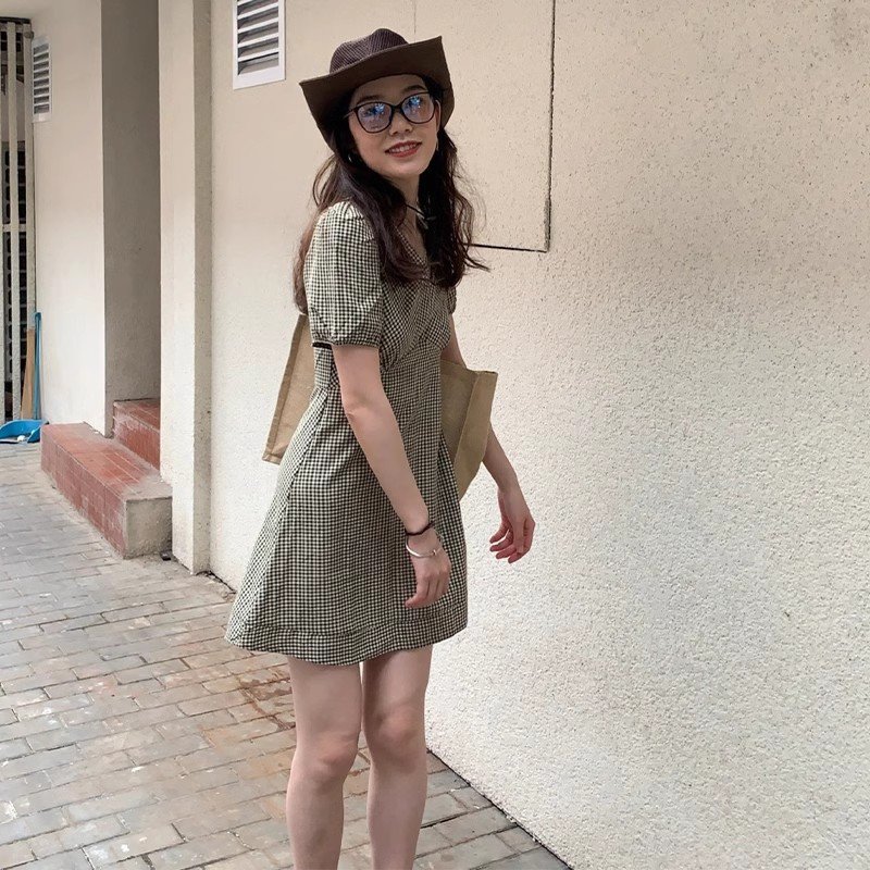 黄色V领连衣裙高级感掐腰裙多巴胺绝美小裙