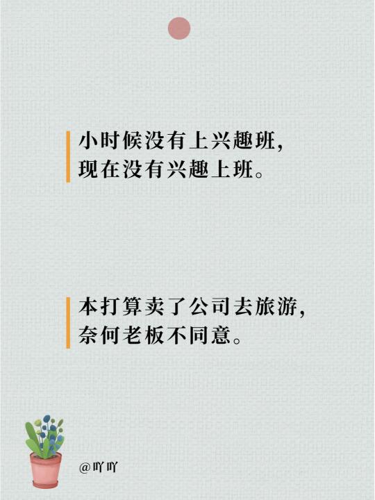 ✨衣柜衣服千千万,只有新的最好看。 ✨摆烂归摆烂,到了饭点还是要吃饭的。 ✨我要努力工作了,不然别人会说除了好看一无是处。 ✨女生不能太胖,万一哪天救别人哥哥是公主抱,而你是123起。 ✨我们每个人都是梦想家,当梦走了,只剩想家了。 ✨至今单身的原因,熟人不好下手,生人不好开口。 ✨小时候没有上兴趣班,现在没有兴趣上班。 搞笑日常 沙雕搞笑 搞笑 发癫文案 搞笑女 搞笑文案 朋友圈文案井沙雕搞笑 搞笑文案牛马 幽默文案 颠公
