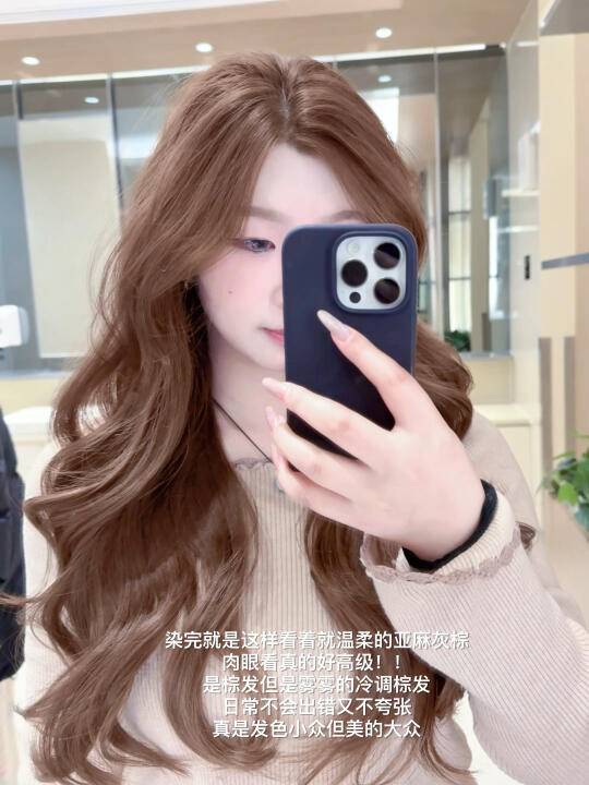 染完就是这样看着就温柔的亚麻灰棕,肉眼看真的好高级!!是棕发但是雾雾的冷调棕发,日常不会出错又不夸张,真是发色小众但美的大众