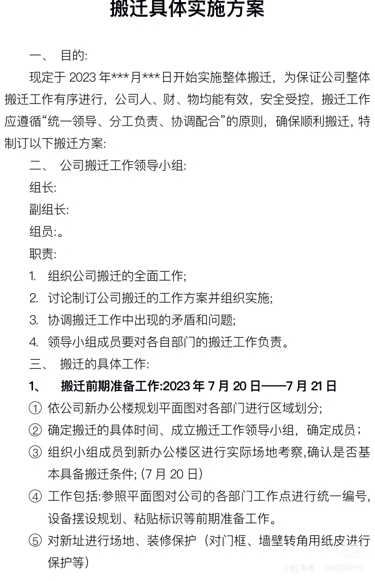 搬迁计划确定了,在搬迁前两周给员工发送通知