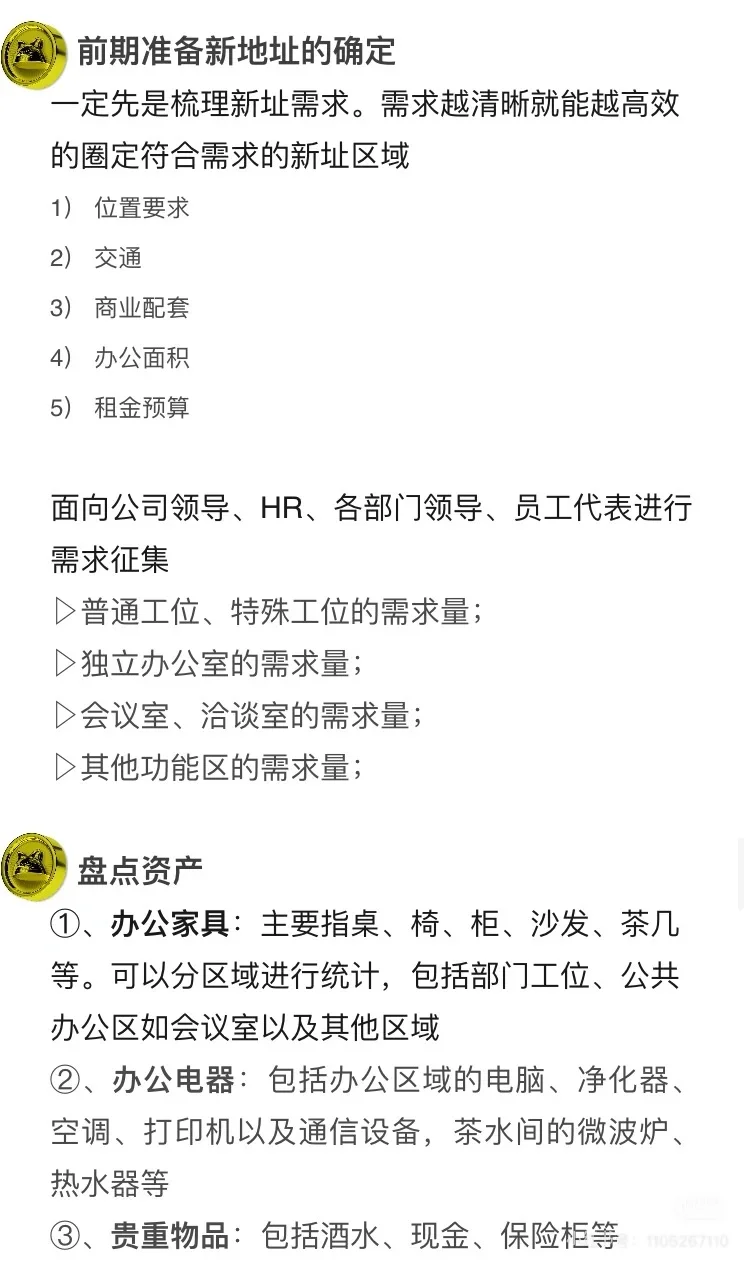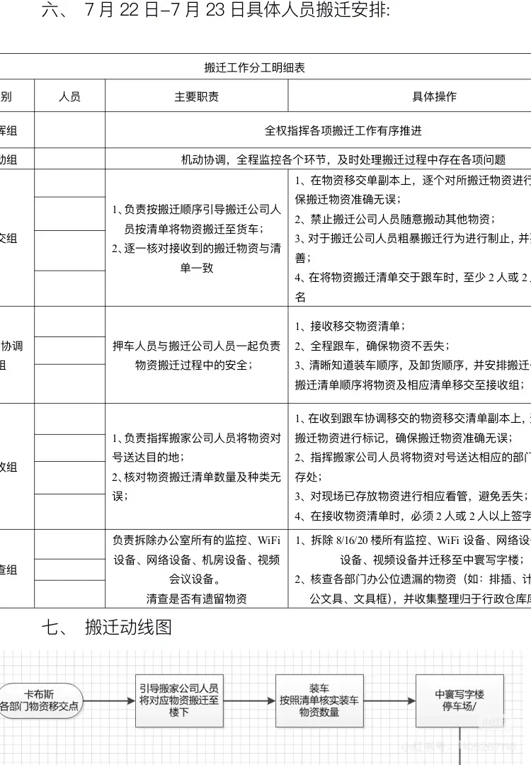 ①、如果公司体量较大,可以根据业务需要把各部门划分为两批进行搬迁