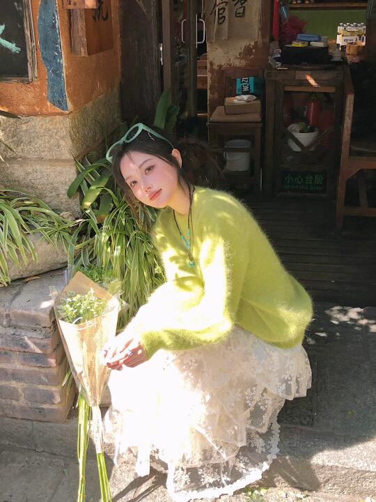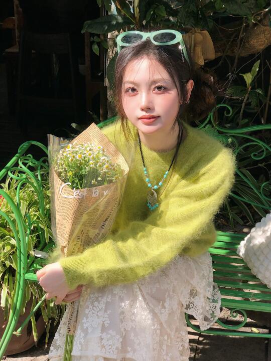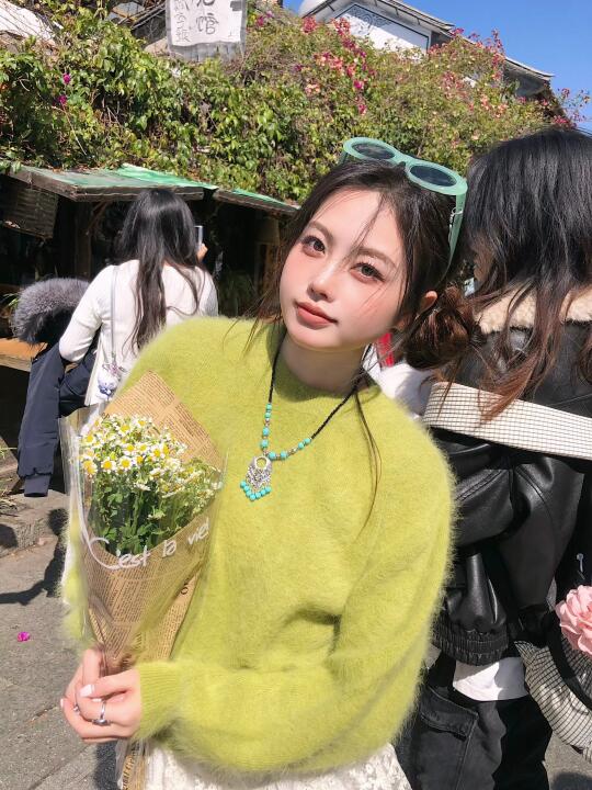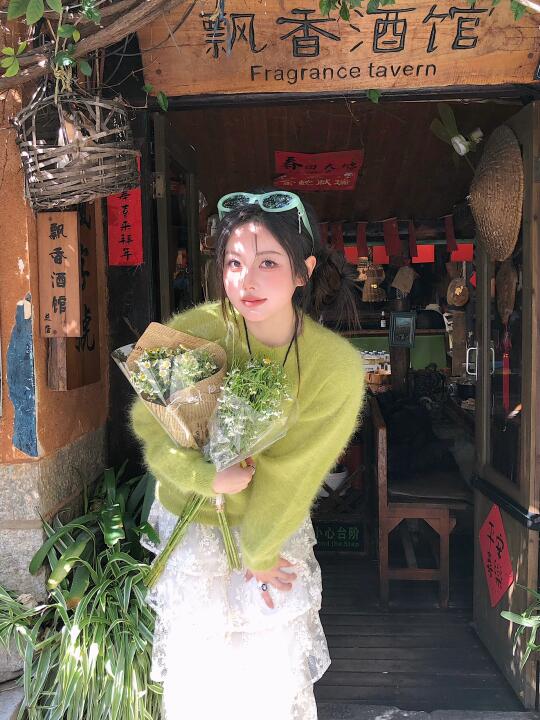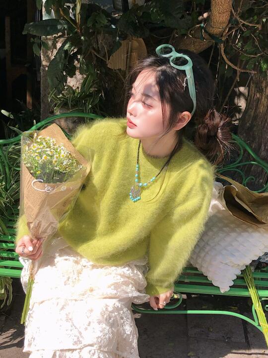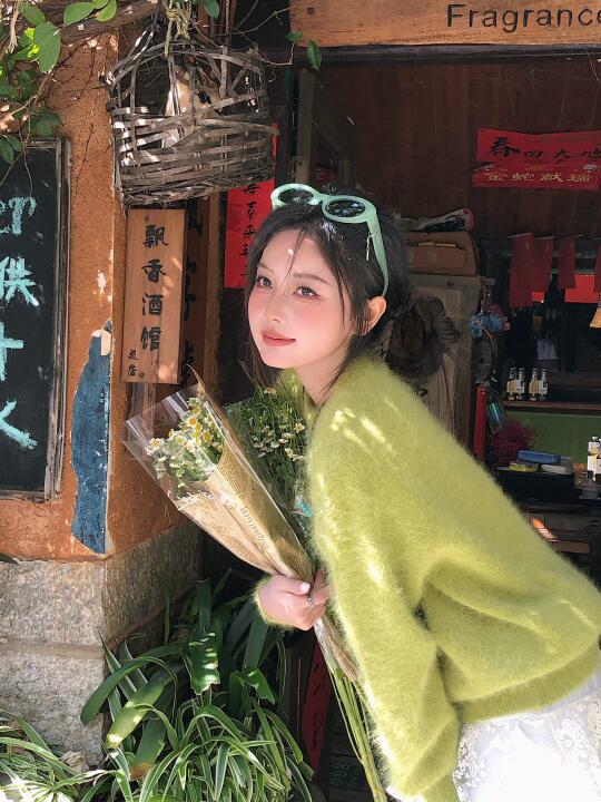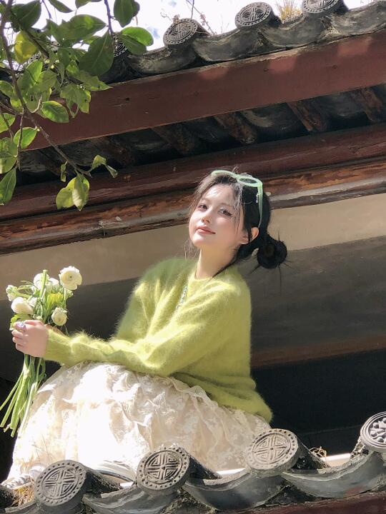 绿色毛衣好适合春天呀! 更适合大理! 春天都安排起来~ 太显白噜