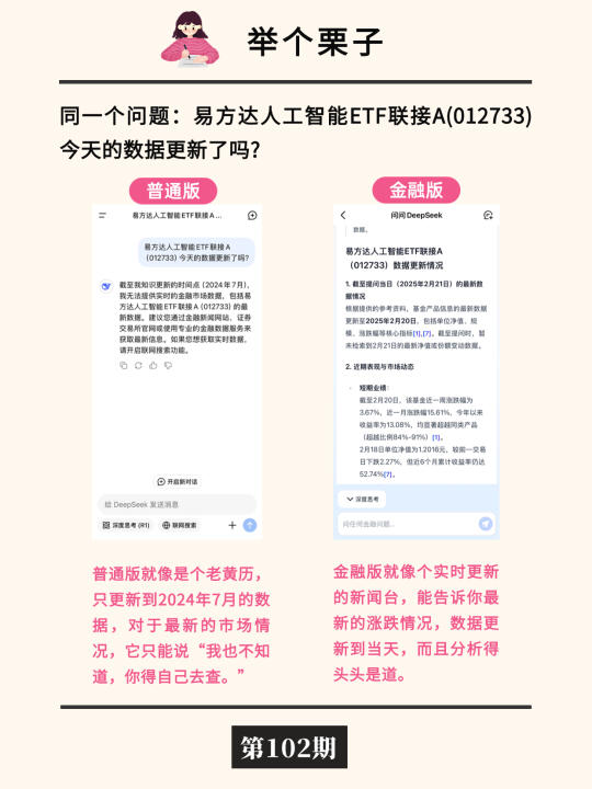 就拿易方达人工智能ETF联接A(012733)来说,金融版DeepSeek能帮你及时把握它的市场动态,让你的投资决策更加明智。