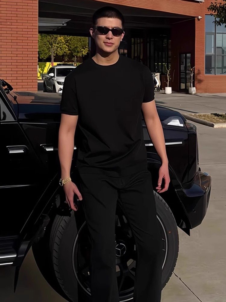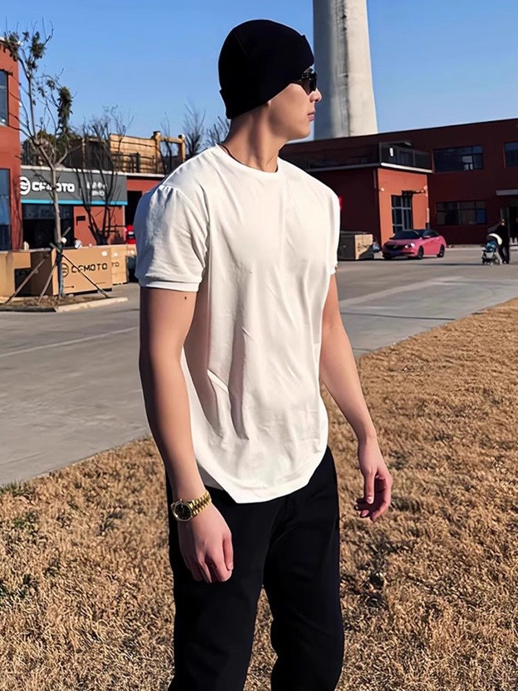 白色冰皮速干健身短袖男款美式小领口正肩t