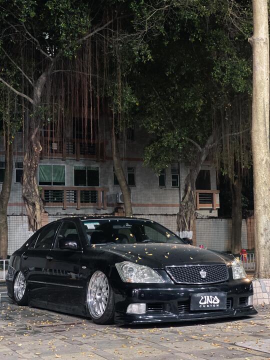 丰田12代皇冠曾经满大街都是, 现在马路上并不多见了! 作为一台经典车型,不改就实属浪费了。 改装项目: 上了一万多的airbft气动避震 加装前后定制倾角底盘件 搭配一套ssr抛边轮毂 加个小包围 简简单单便已足矣。