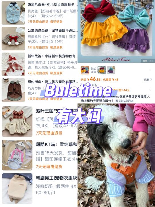 大狗时尚不易,很多可爱精致的小衣服都没有我们尺码。海运以下店铺有大狗尺码: