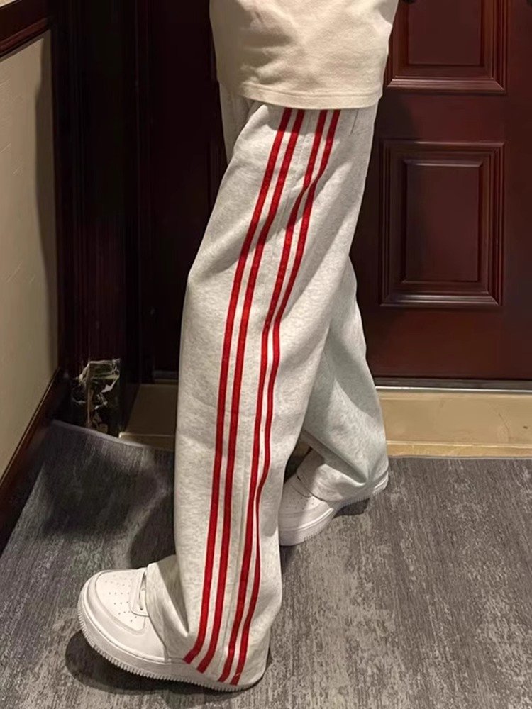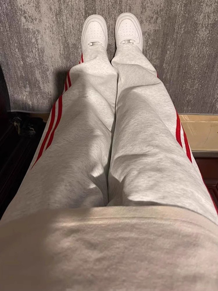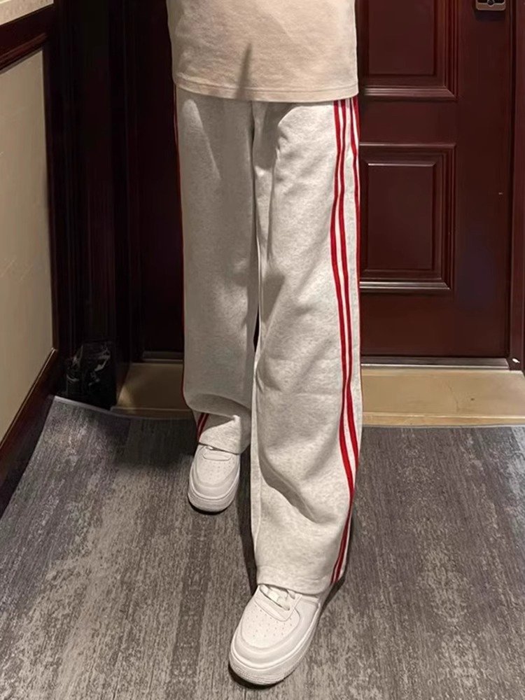 白花灰色条纹裤子男款美式慵懒松弛感裤子c