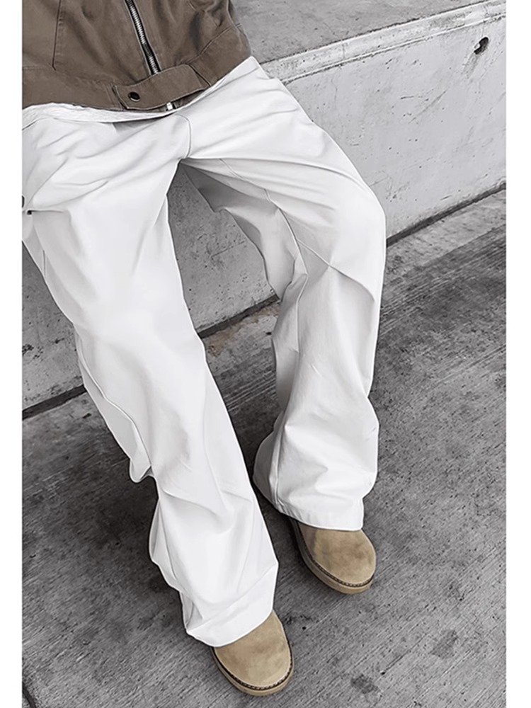 白色褶皱伞兵工装裤子男款高级感直筒微喇冲