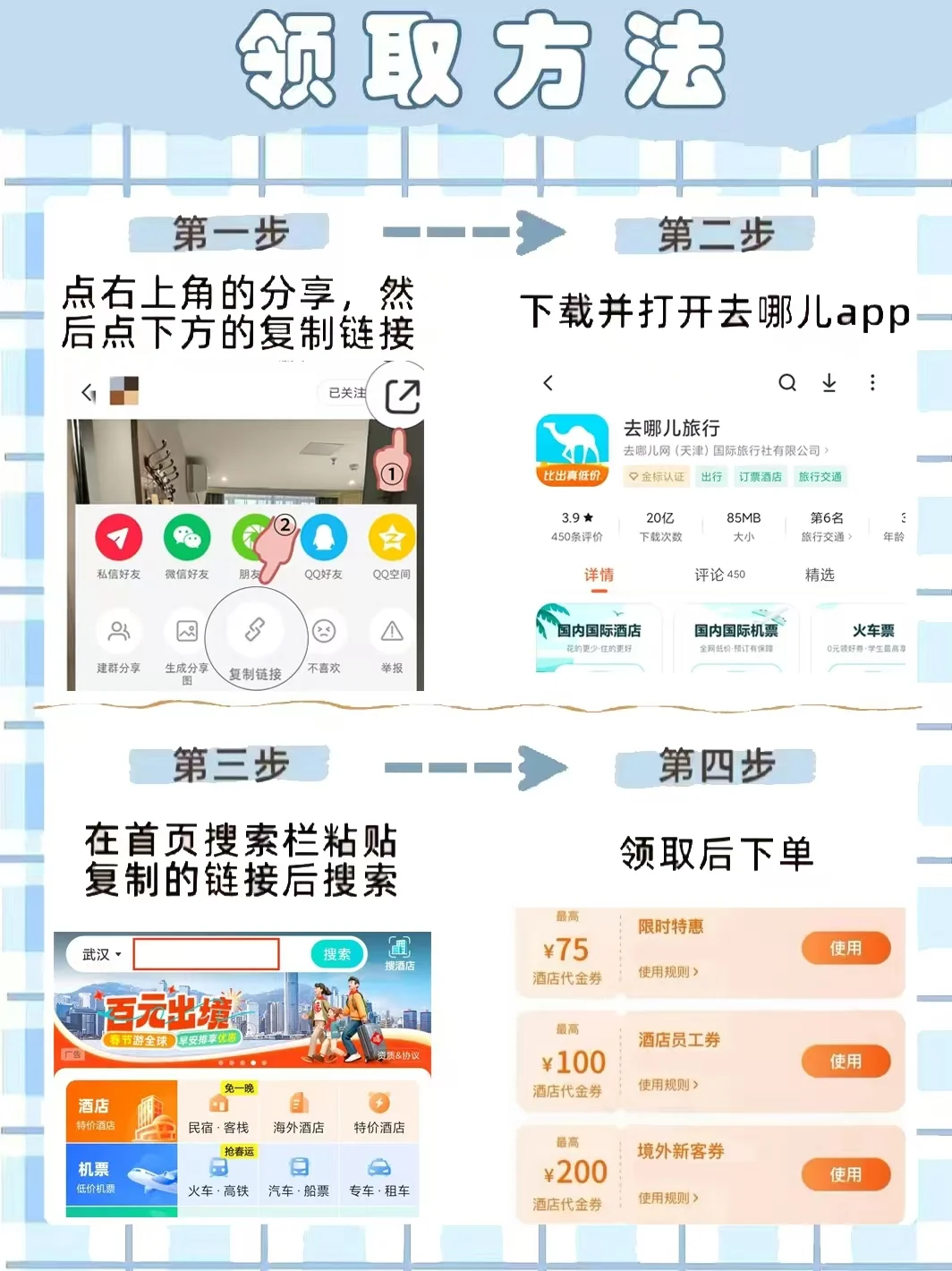 订酒店用哪个app便宜靠谱? 你是不是总是因为酒店价格💰的问题纠结?总看见各种app的广告,然后发现货不对版?希望看完我这一篇,能让你知道哪个app订酒店便宜又安心! - 请看同一酒店不同平台的价格对比👇🏻 1⃣️美团:187💰 特点:以外卖订餐为主.酒店什么的优惠活动屈指可数 2⃣️同🍊旅行:148💰 特点:有保障的低价,总得来说中规中矩。 . 3⃣️飞猪🐷:340💰 只有特价才划算,酒店🏨数量相对较少。 供给不能完全保证,但有时价格相对较低⬇ - 4⃣️去哪儿旅行:129💰 特点:以低价著称,是学生党订酒店的首选。 平台每天都有羊毛可以薅,还可以领💰。 功能:为旅游者提供国内外机票、酒店、会场、度假和签证服务的深度搜索,性价比相对较高。 - 每次出去玩前,都会多家平台对比酒店的价格🆚 去哪儿旅行不仅有酒店优惠券🎟,新用户优惠力度更大,部分酒店🉑半价拿下! 平台还有专属于学生认证的大额券包、员工专属优惠券🤩新人入住另有100元的酒店红包📣 除此之外,还有以下优惠: ✔员工专属优惠券 ✔体验钻石💎85折 ✔酒店权益大礼包🎁 📲另有学生认证优惠和酒店权益大礼包🎁 一顿操作下来…..五折就可以住酒店🏨 - 💥具体操作看这里👇🏻 ✅点开此帖右上角,复制链接 ✅下载 去哪儿旅行app ✅打开app在首页粘贴链接搜索 ✅领取酒店优惠券并使用(详情见最后一张图) - 还有什么疑问🤔都可以问我或者在评论区提问哦! 大家还有其他便宜订酒店的方法也可以打在评论区~ -
