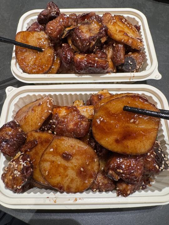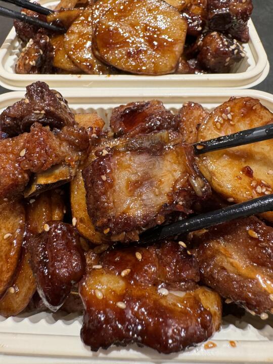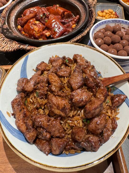 真的好吃死了,年糕糯叽叽的,排骨酸甜软烂,轻松就脱骨。海肠捞饭,牛肉饭、猪蹄排骨也都很好吃。