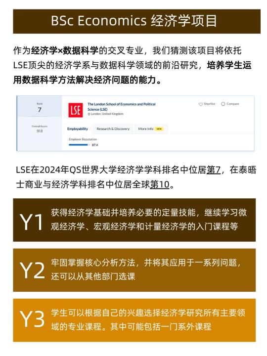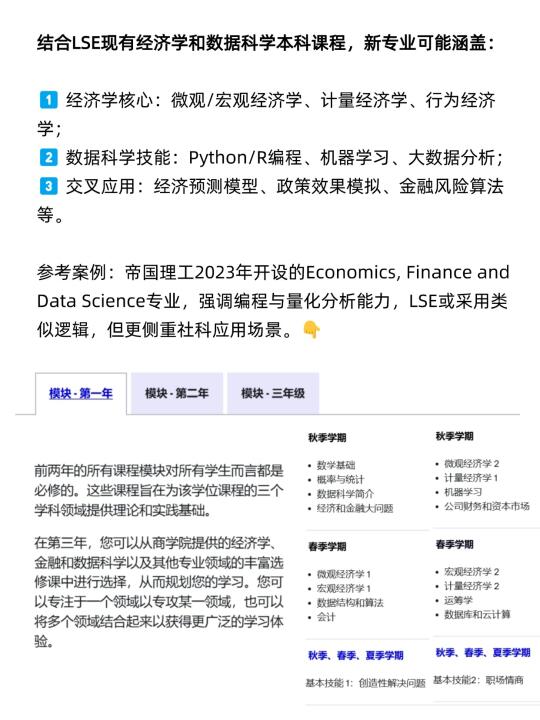 参考案例:帝国理工2023年开设的Economics, Finance and Data Science专业,强调编程与量化分析能力,LSE可能更侧重社科应用场景。