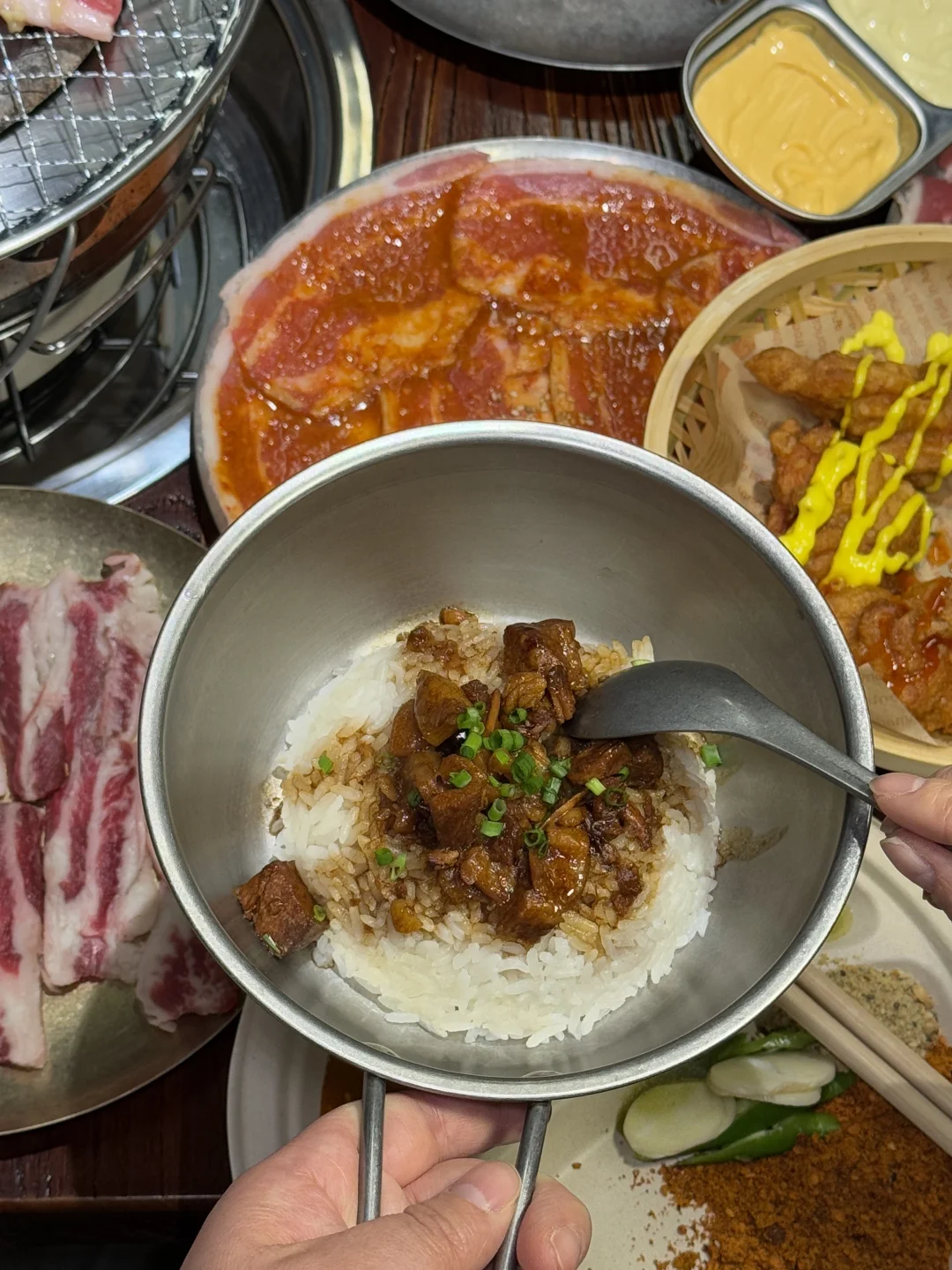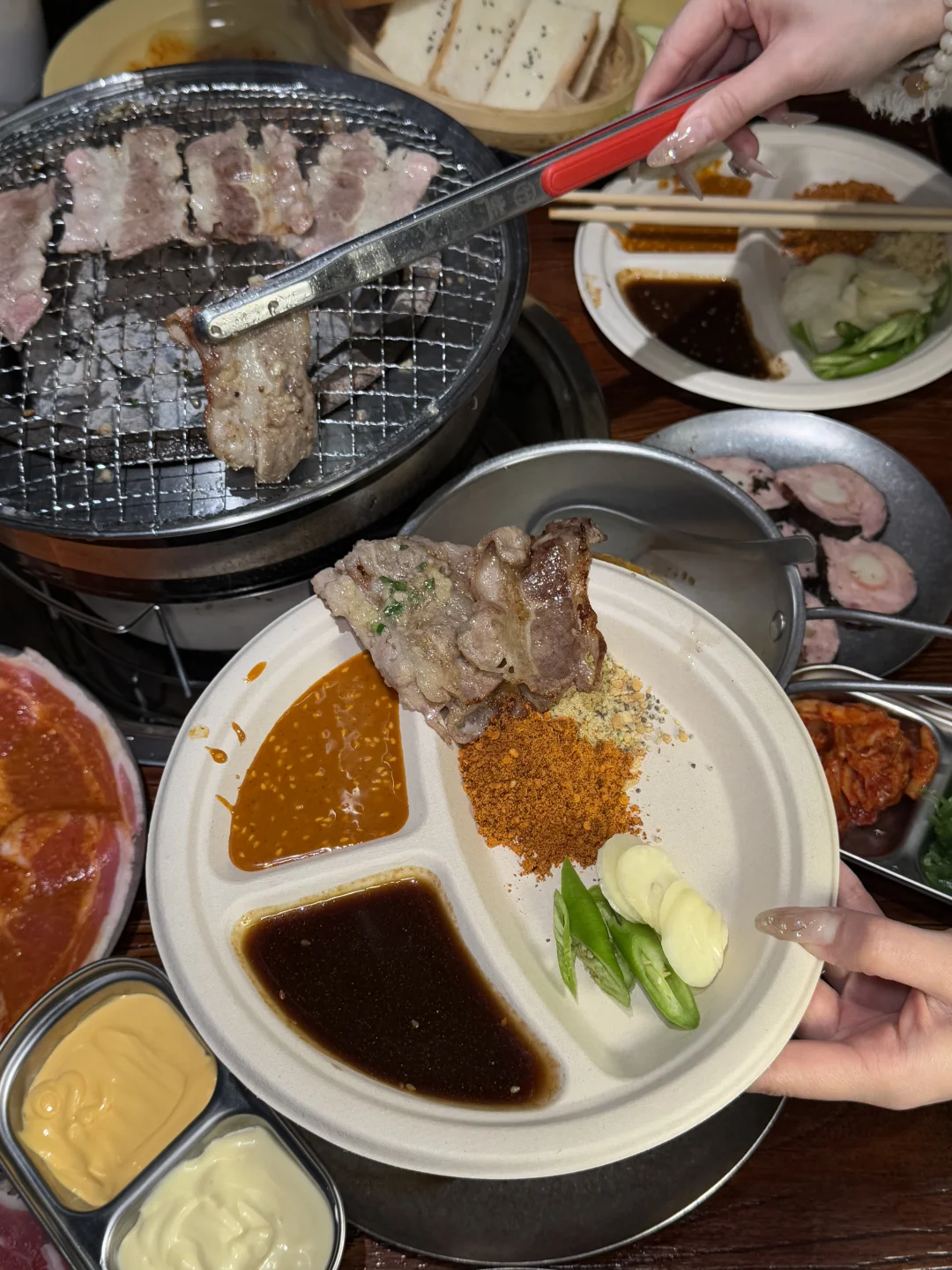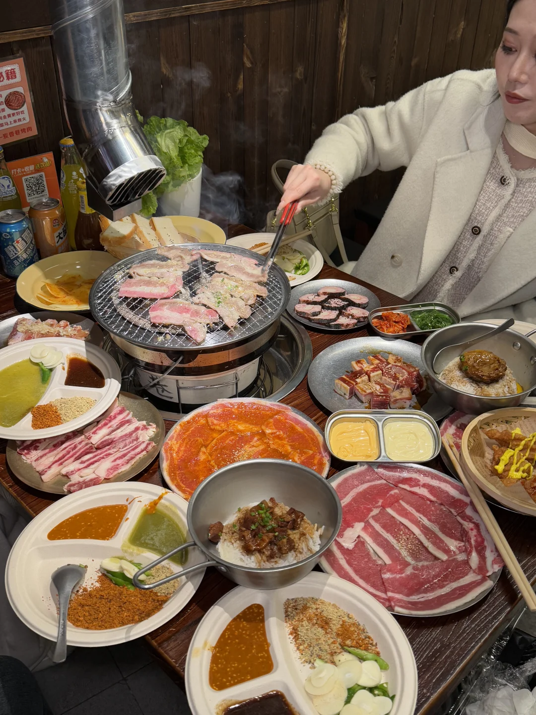家人们谁懂啊,在川大江安校区附近发现一家超绝烧肉店🥩 直接把漫画里的烧肉搬到现实! 一进店,宽敞明亮又温馨的环境超舒适。重点是全程自助拿肉,像逛超市一样方便,超有趣! 他家菜品丰富,食材新鲜还实惠。必尝安格斯牛五花(有蒜香,原味、辣味等多种口味),鲜嫩多汁,裹上生菜蒜片,一口封神。黑金卤肉饭也不能错过,鲜香浓郁,吃一口就停不下来。