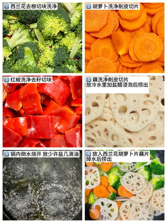 1️⃣ 西蓝花去根切块洗净 藕洗净后削皮切片