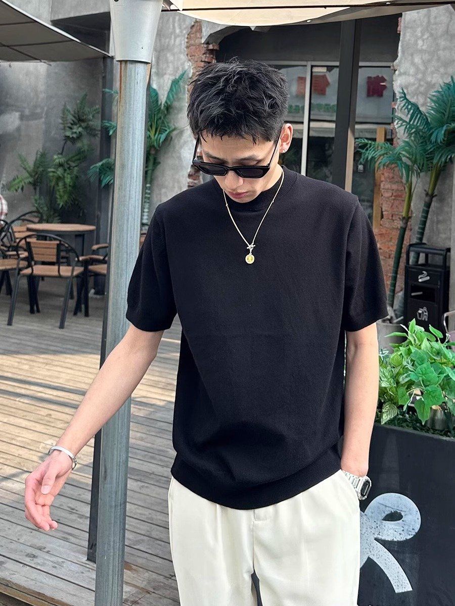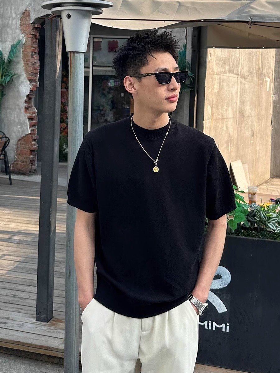 白色半高领短袖男款美式痞帅高级感t恤cl