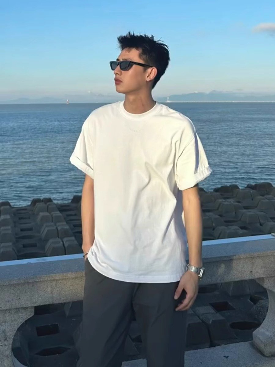 白色正肩短袖男高级感痞帅半袖上衣clea