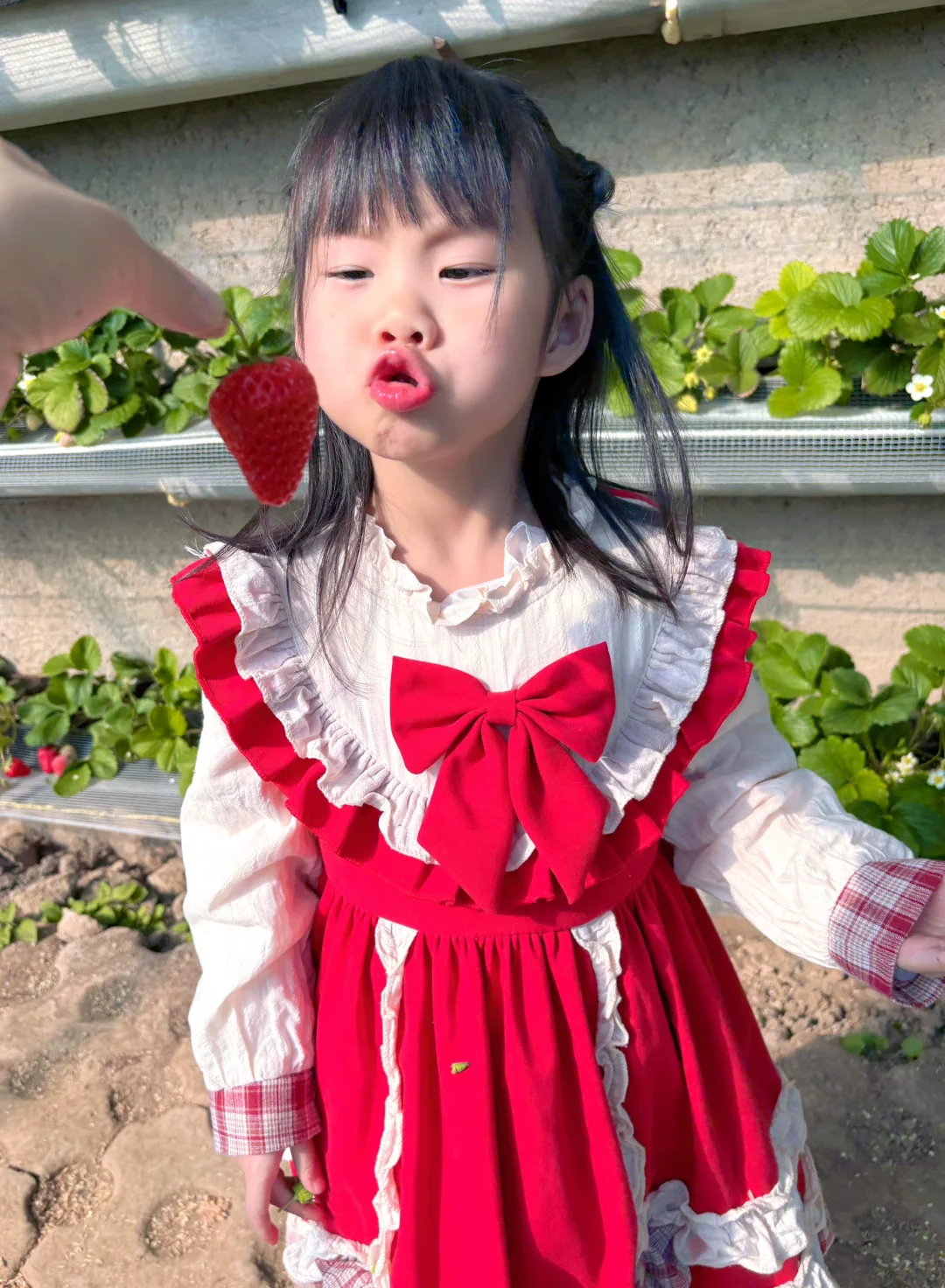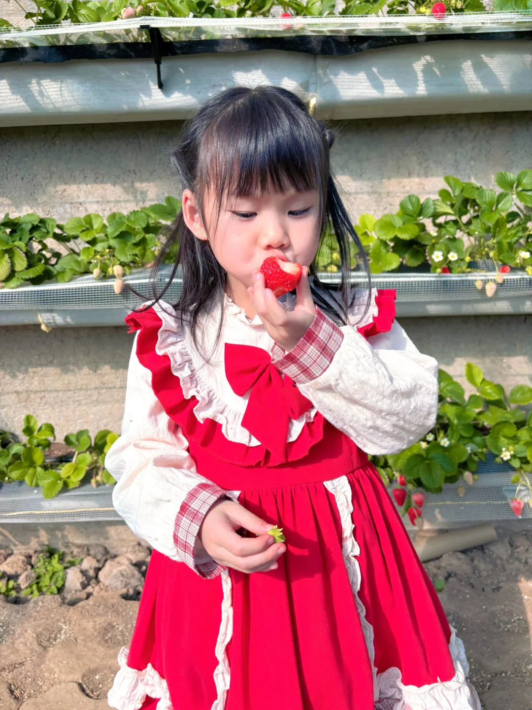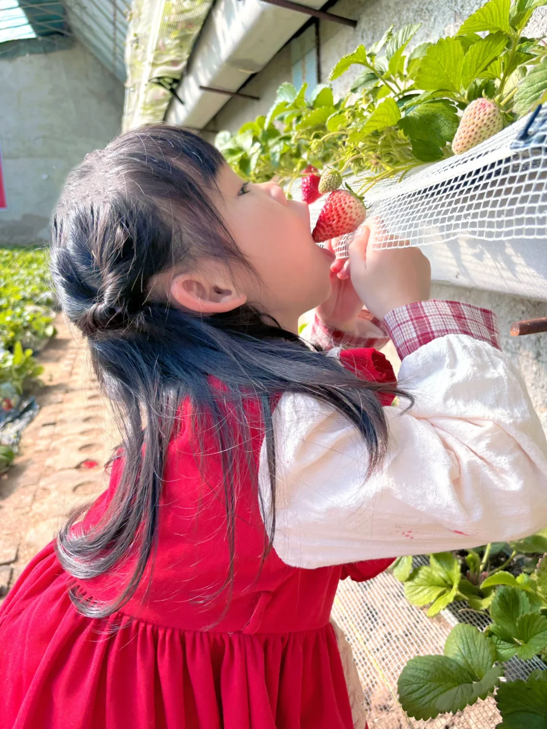 4️⃣千万不要穿白色衣服,草莓汁弄到衣服上了特别难清洗。(穿着红色系的衣服,拍照比较好看📷)