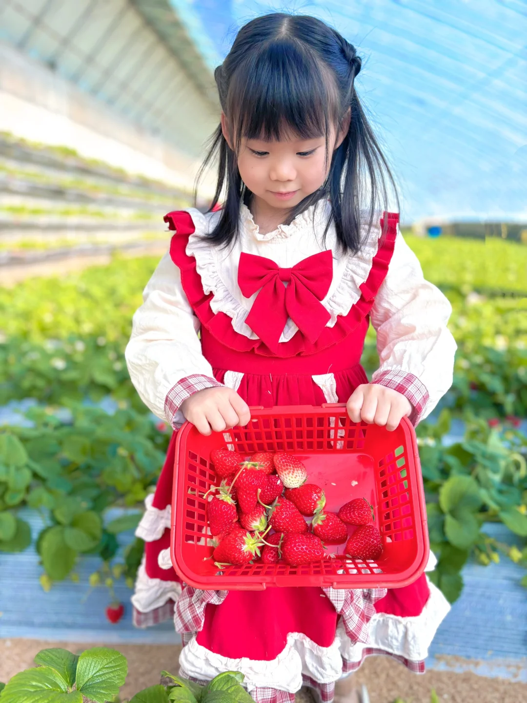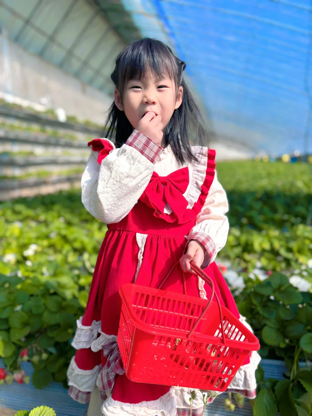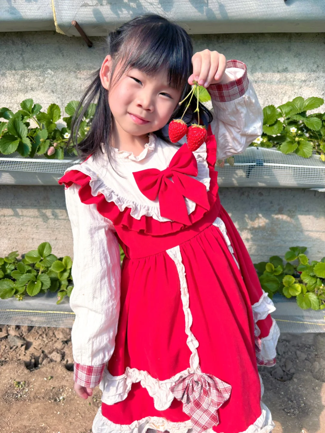 4️⃣千万不要穿白色衣服,草莓汁弄到衣服上了特别难清洗。(穿着红色系的衣服,拍照比较好看📷)