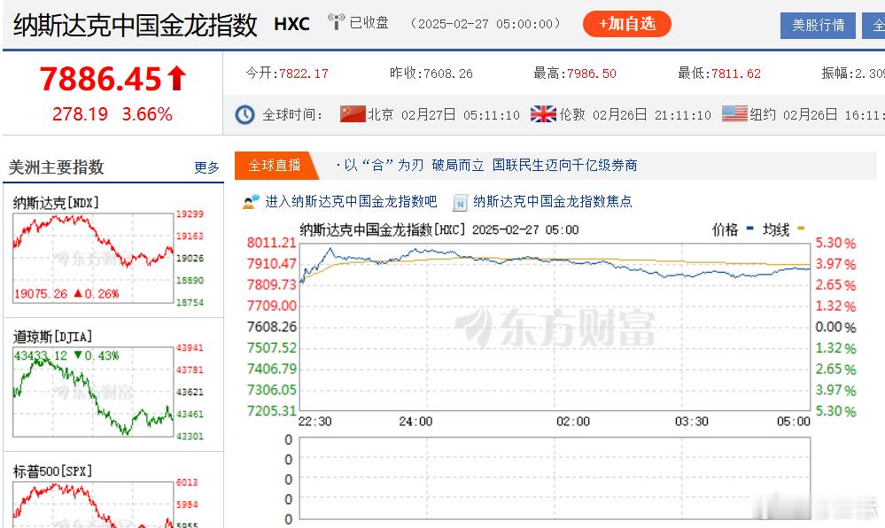 纳斯达克中国金龙指数收涨3.66% 小鹏汽车涨近15%==2月27日,热门中概股普涨,纳斯达克中国金龙指数收涨3.66%。高途涨近32%,小鹏汽车涨近15%,蔚来、理想汽车涨超10%,向上融科、富途控股涨逾9%,京东涨超6%,阿里巴巴涨近4%。