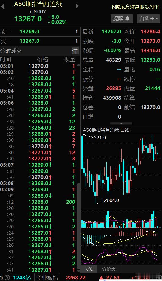 A50期货指数收在13274.0,下跌4.0点,跌幅0.03%。