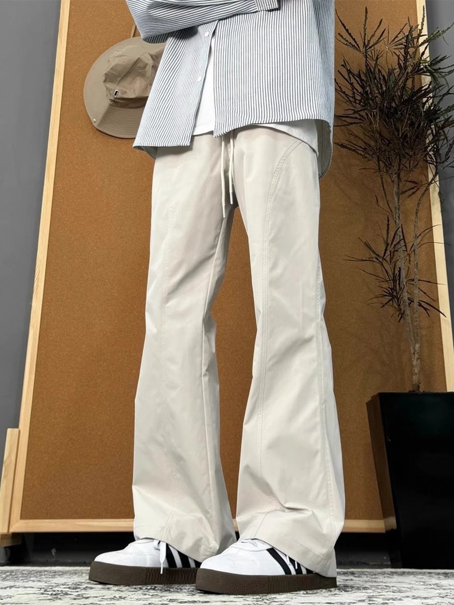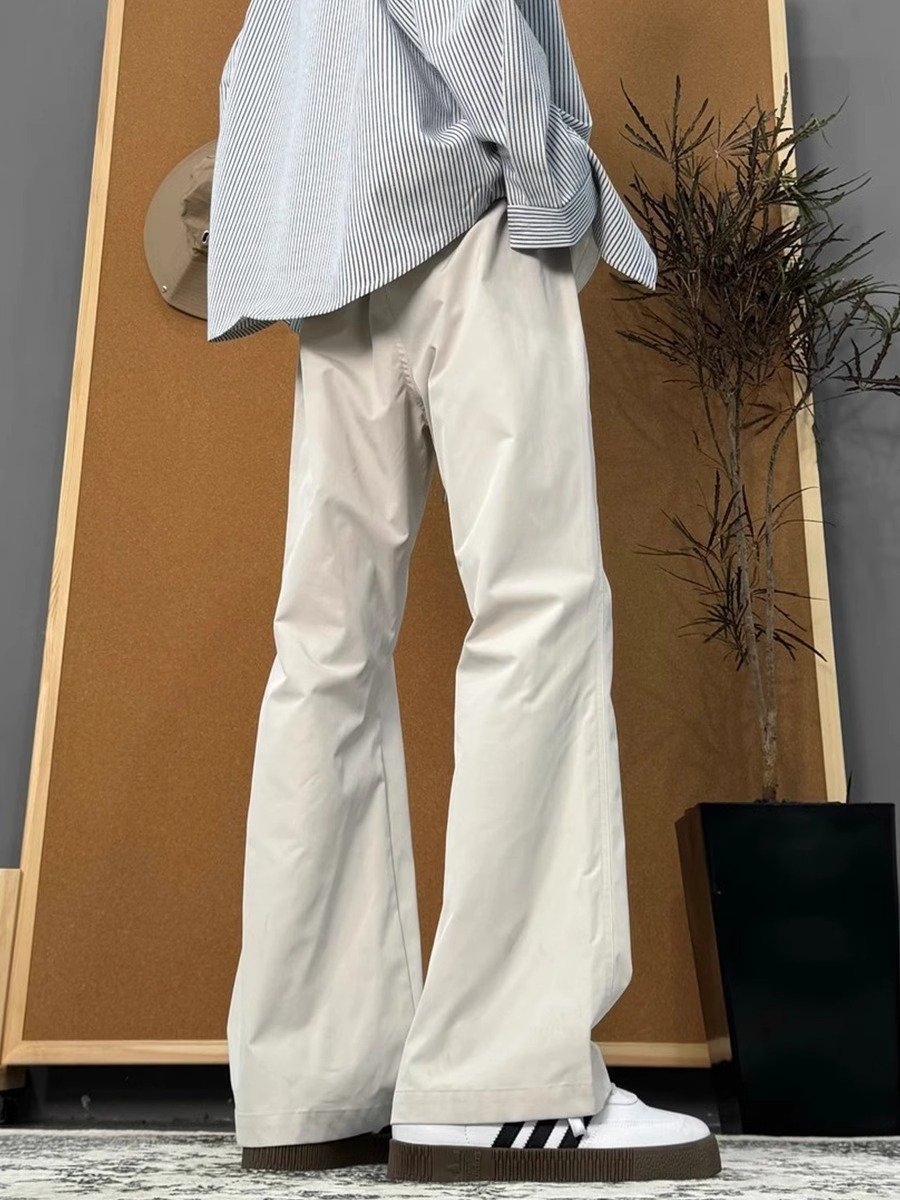 米白色斜切弯刀裤子男款春秋防水软壳冲锋裤