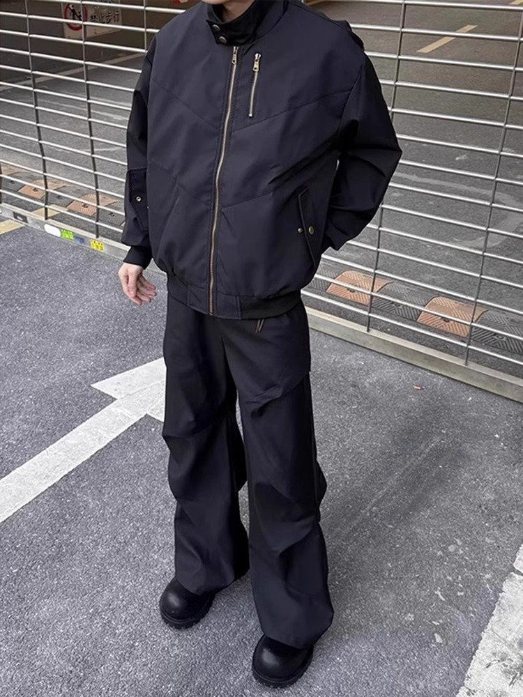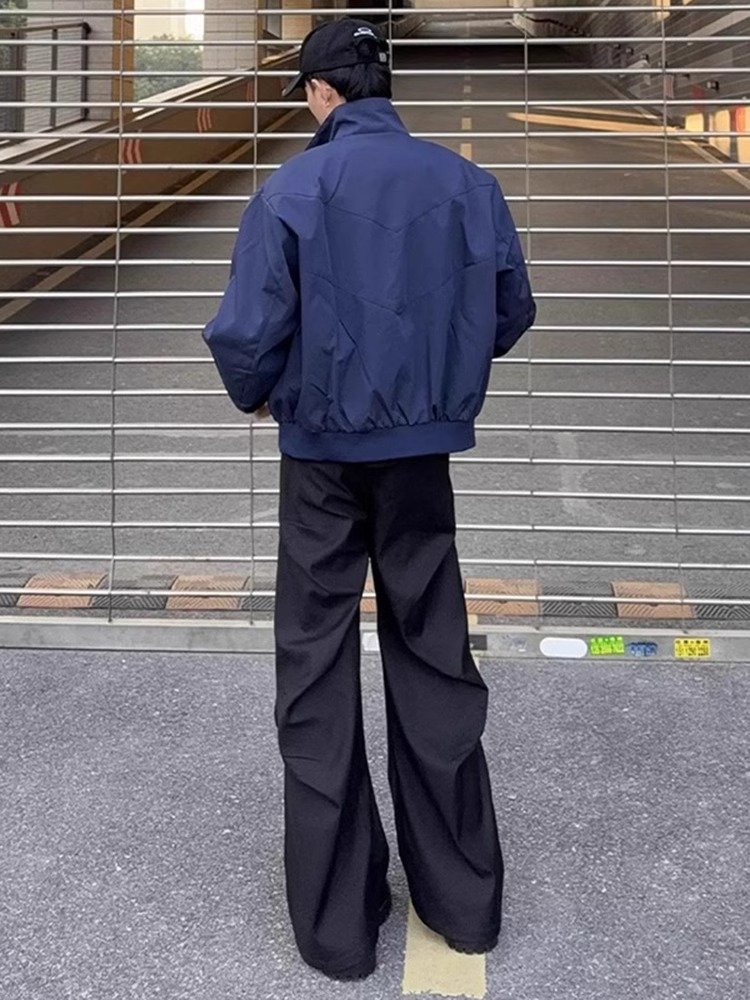 黑色褶皱微喇西裤男款垂坠感高级感直筒西装