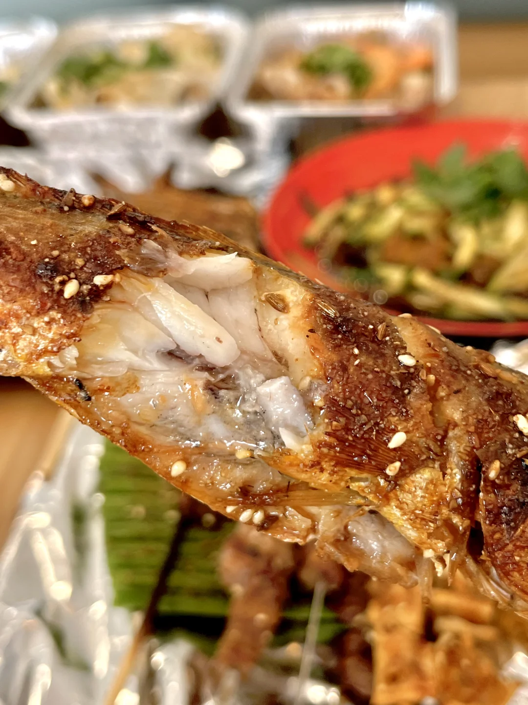 鱼皮烤得焦香酥脆,咬一口里面的鱼肉嫩得跟豆腐似的
