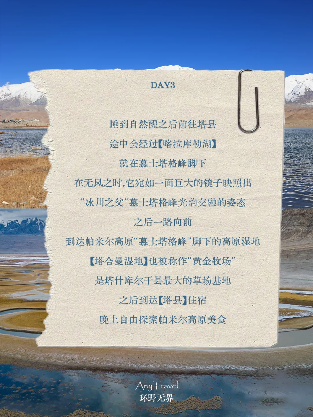与干净的湖泊🌊、冰川、以及巨大且无遮拦的雪峰为伴,近距离体验南疆的人文气息和民族风情,强调「人与人的联结、人与自然的联结」🔗