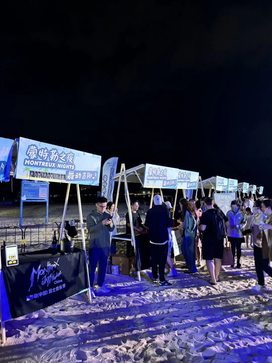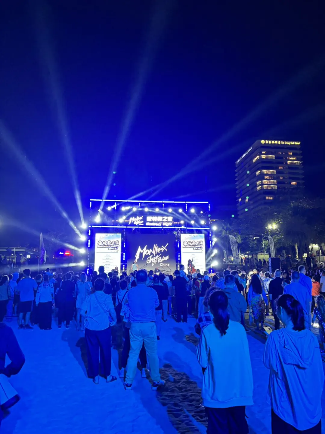 沙滩被舞台的灯光笼罩,整个沙滩都散发着音乐的气息