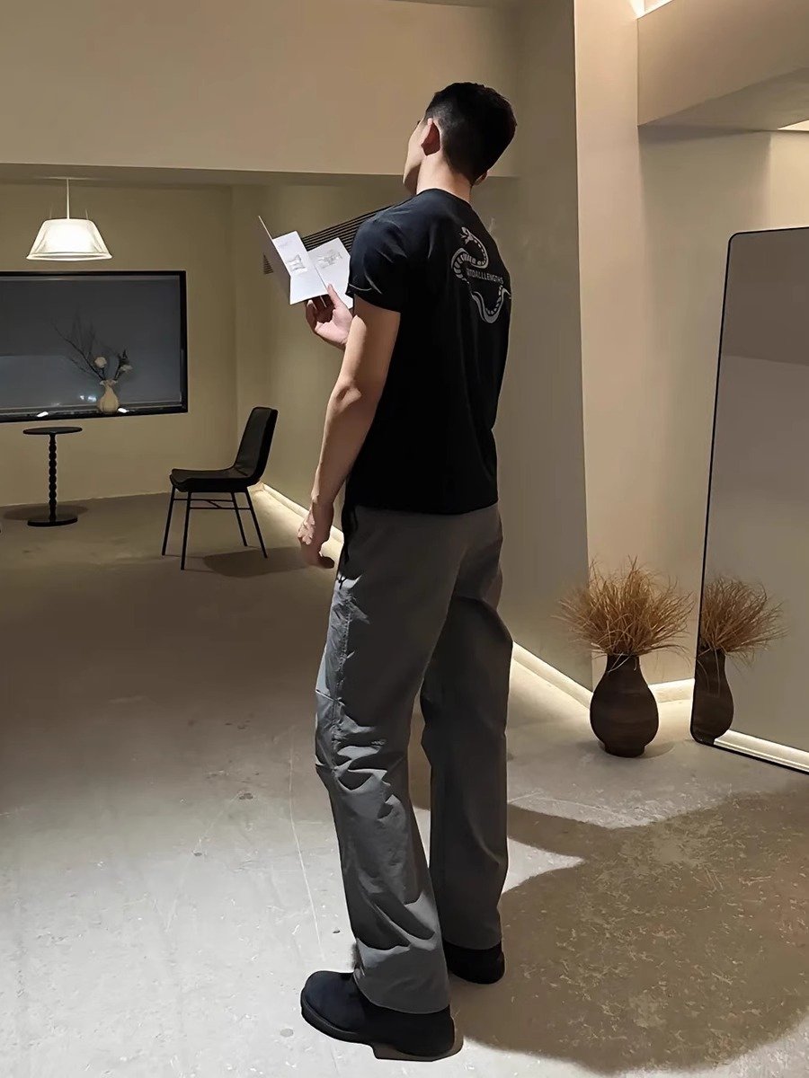 灰色纹理感短袖男夏季高级感v领t恤cle