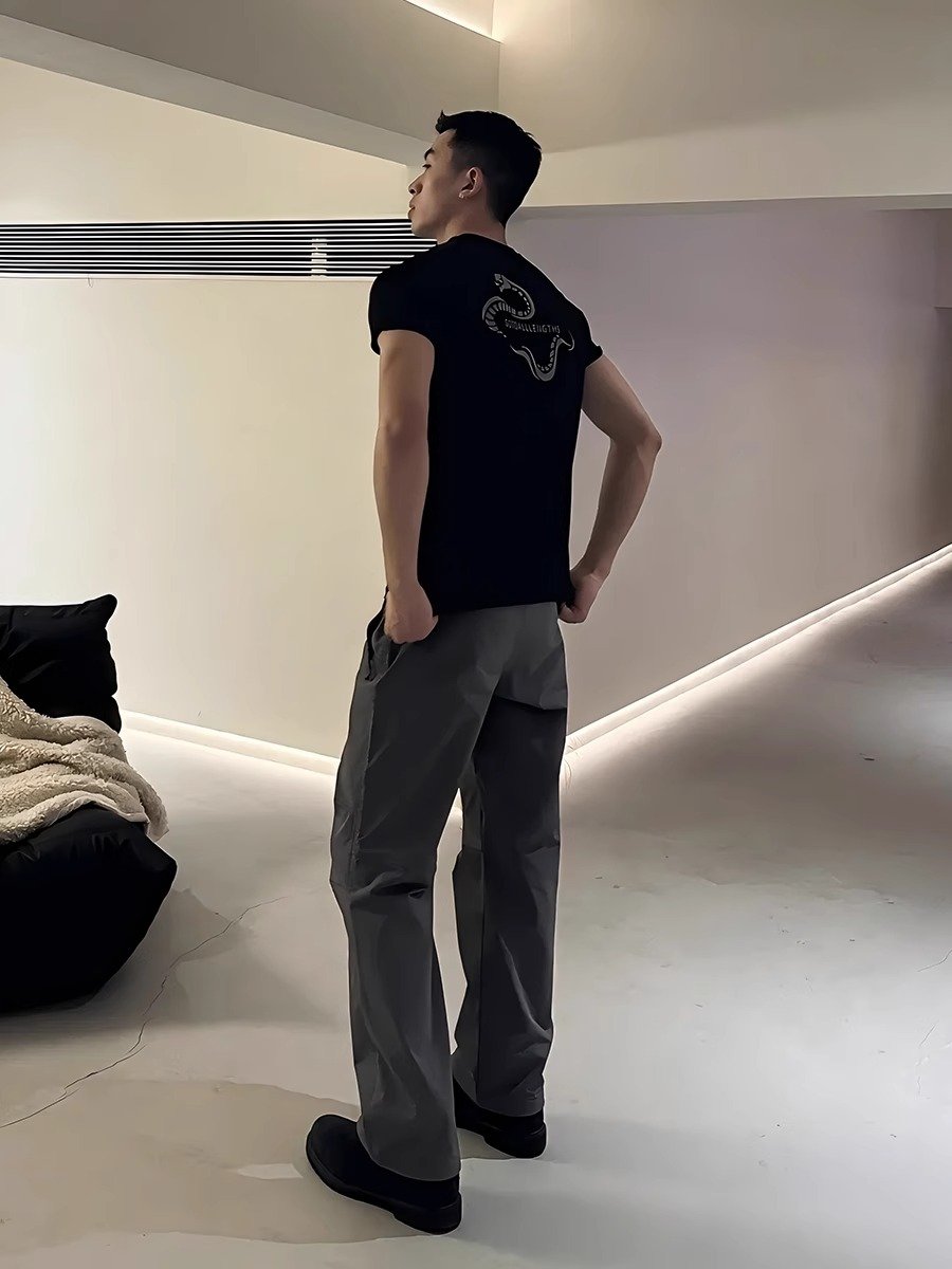 黑色褶皱弯刀西裤男款春秋季高级感垂坠感裤