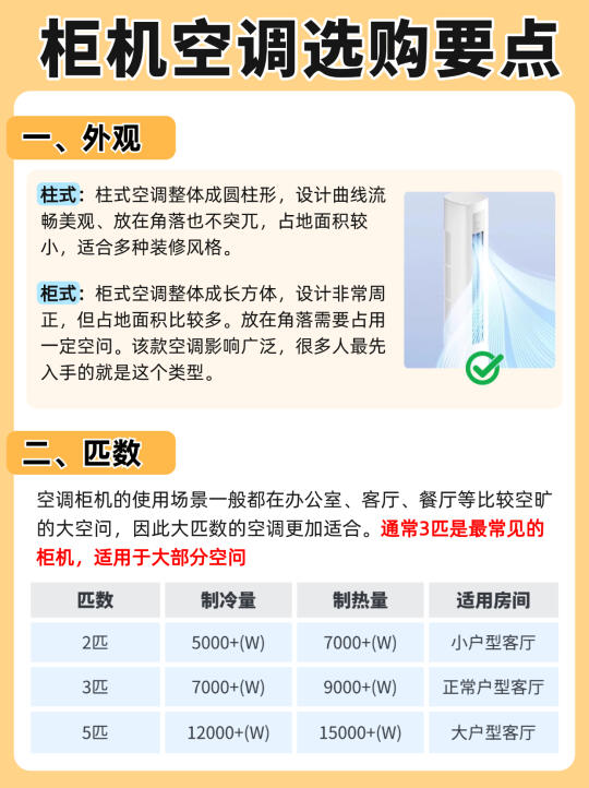 今天橙子🍊来告诉大家如何选择柜机空调❓