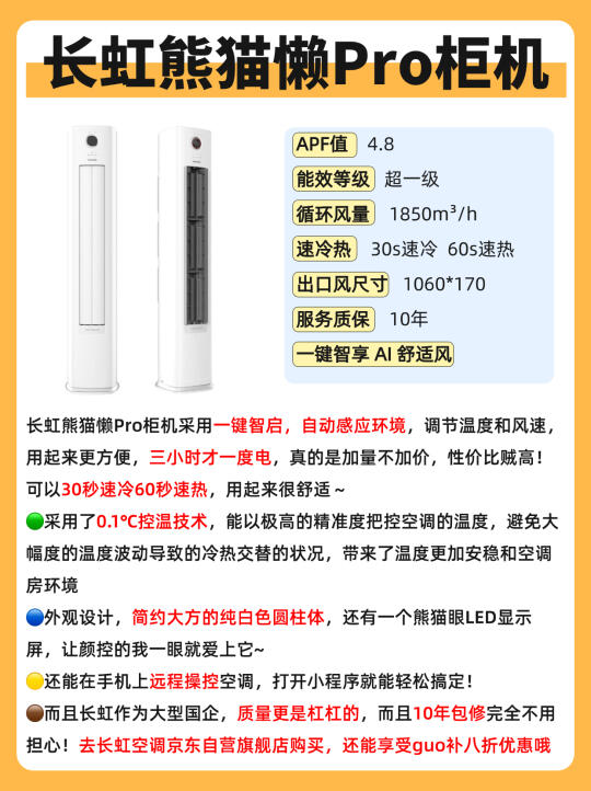 再看售后和价格方面也很给力👍🏻10年包修服务,八折guo补优惠,算下来真是头等舱品质,商务舱价格,家里有旧款长虹的还能以旧换新,直接换一台才新品上市的空调,性价比简直拉满!!!