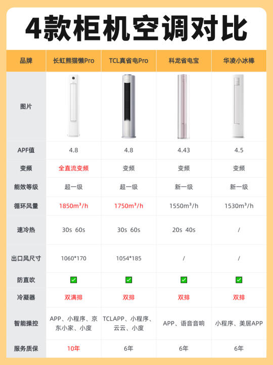 我对比研究了长虹、TCL、科龙、华凌,综合分析4️⃣款柜机空调在各方面都很优秀,但💥长虹熊猫懶Pro更胜一筹!