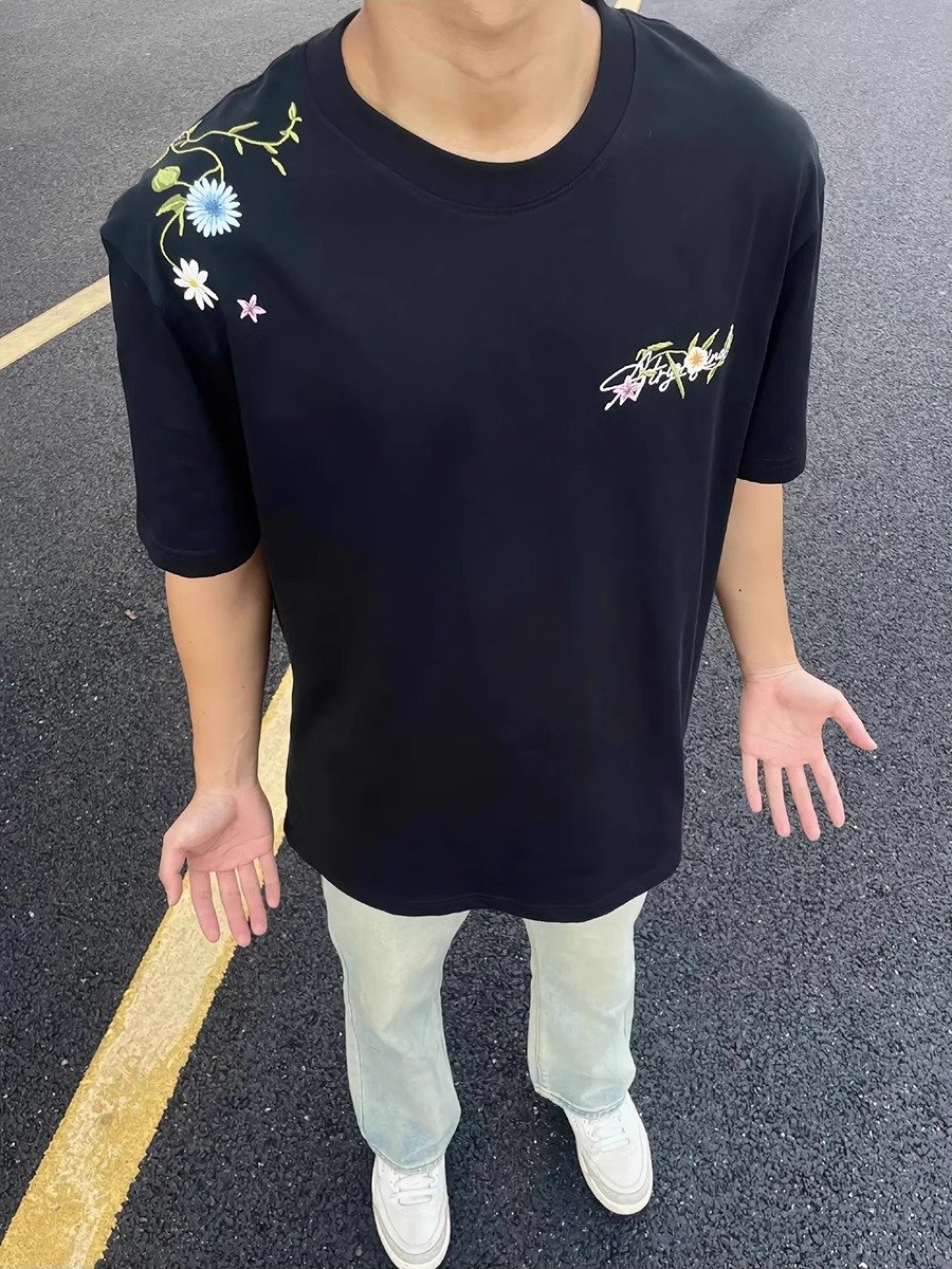 MEDM花卉刺绣t恤男夏季高级感纯棉短袖
