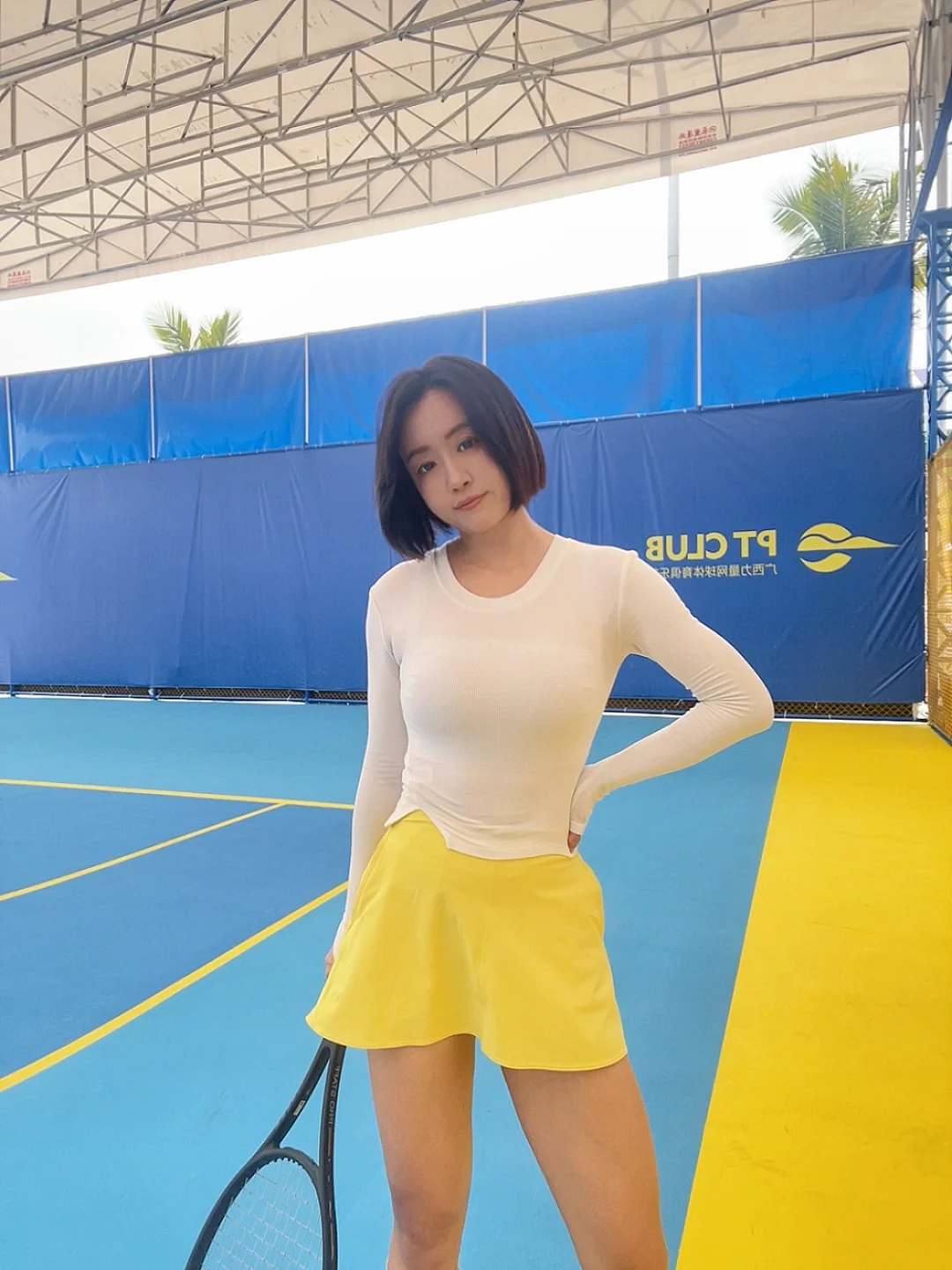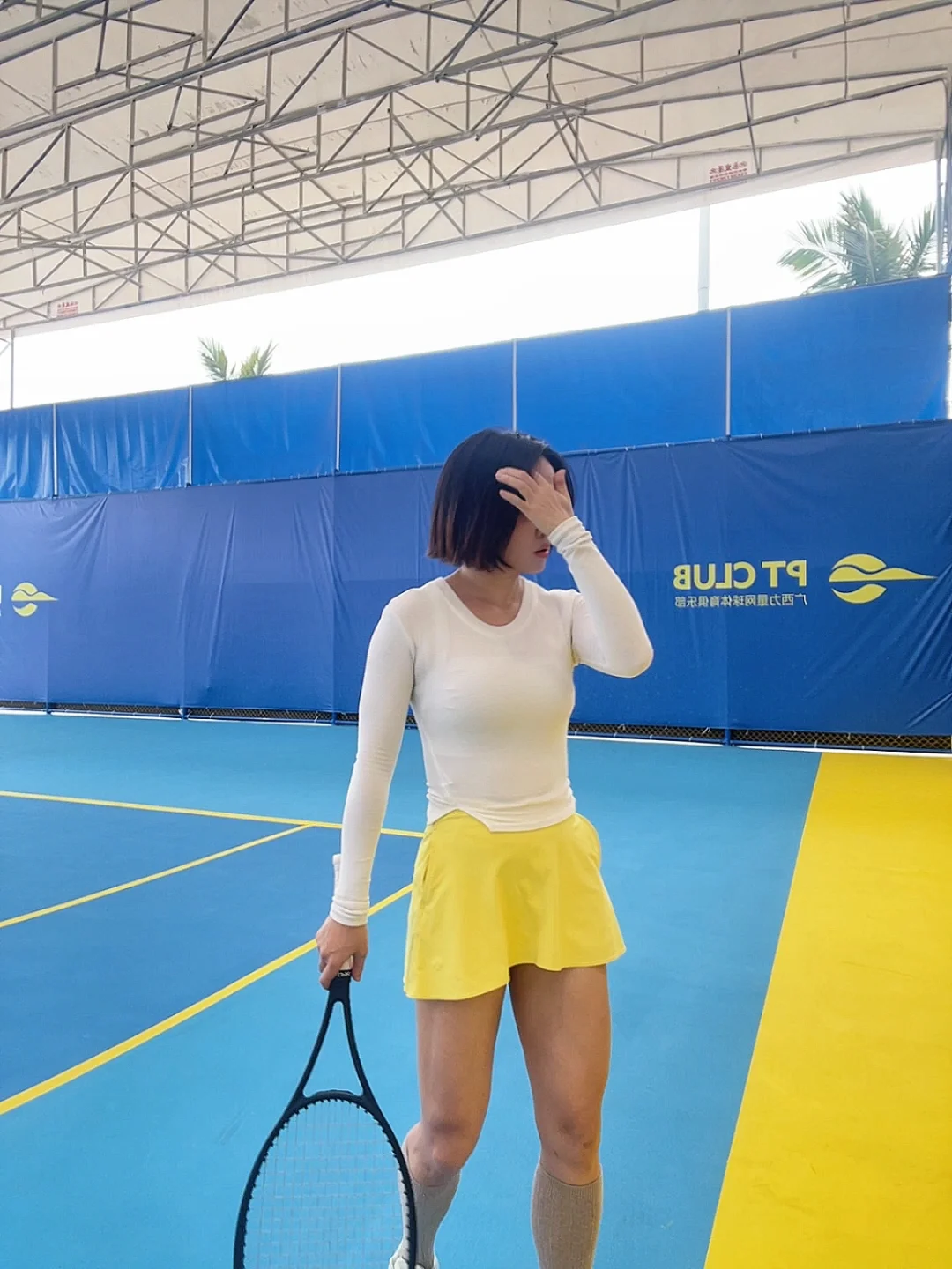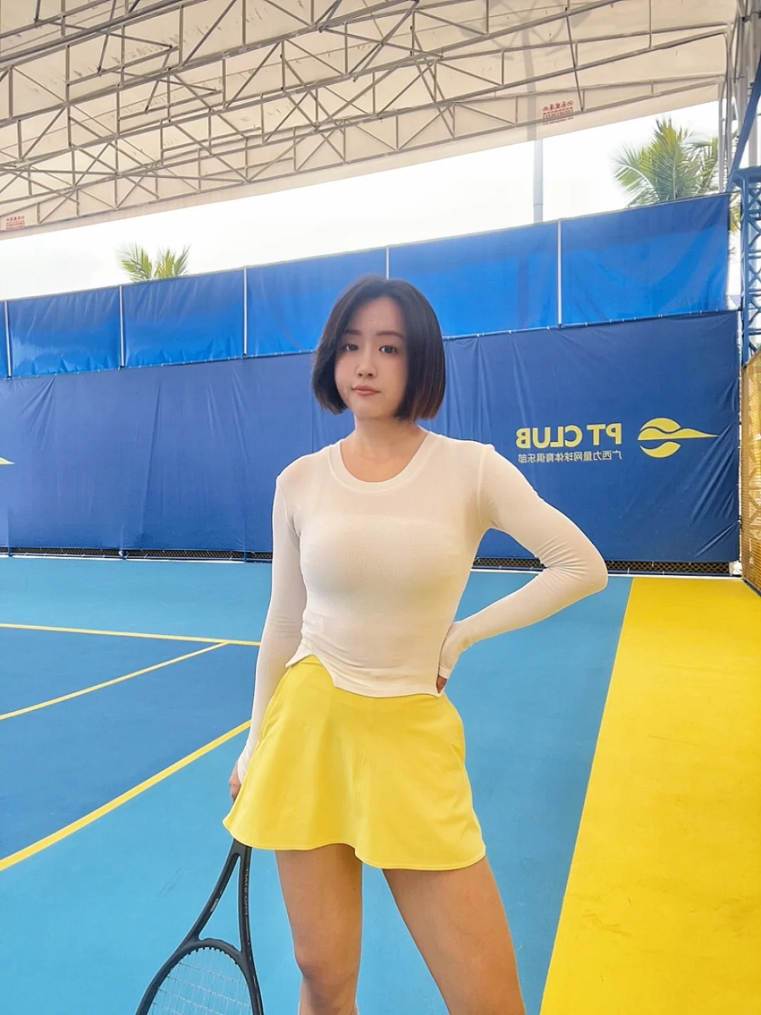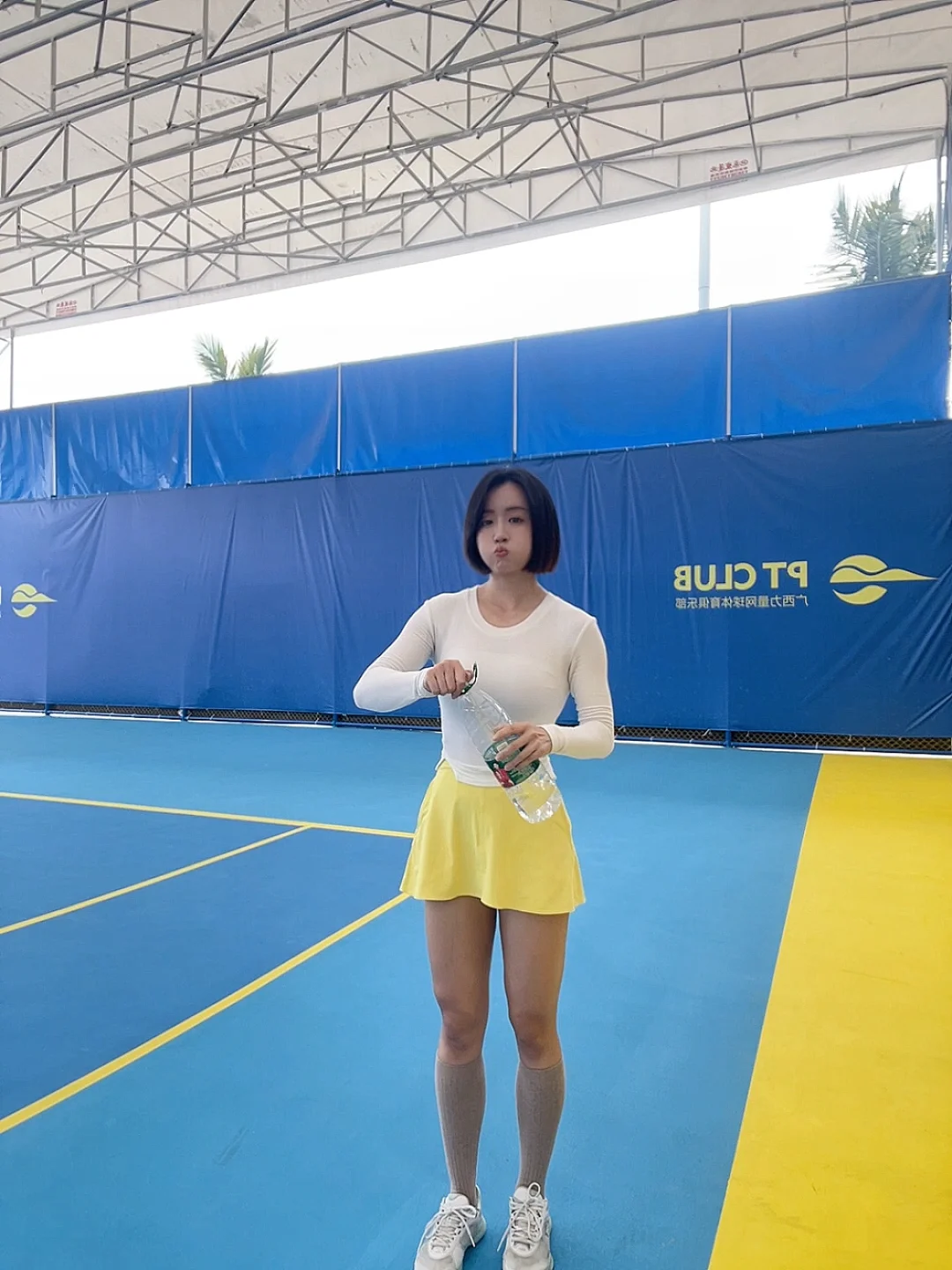 天气一暖我又活过来了☀️ 摆脱南宁一直持续这样的温度吧 不想再冬眠了 特地搭配了小黄人配色的网球裙 一周没打球 脚像粘在地上动不了 手也合不上身体的力[汗颜R]