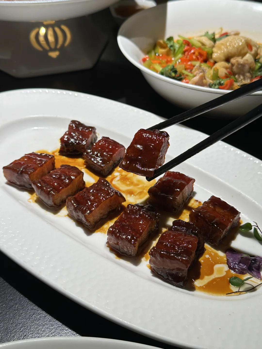 一行人直接拖着行李来这里!果然没让人失望!! 就在武昌万象城4楼,环境hin雅致,每道粤菜精致地道还不贵~樱花季🌸限定氛围拉满~ 金柚包,绿色真的好春天!☘️ 外皮酥脆,里面又很松软,馅料很足,一口就把我香迷糊了~ 红葱藜麦罗氏虾,鲜甜肥美又弹牙,藜麦加入,口感更加丰富~ 灌汤脆皮烧鹅,皮脆肉嫩,肉里含满汤汁,蘸点酱汁,嘎嘎好吃~