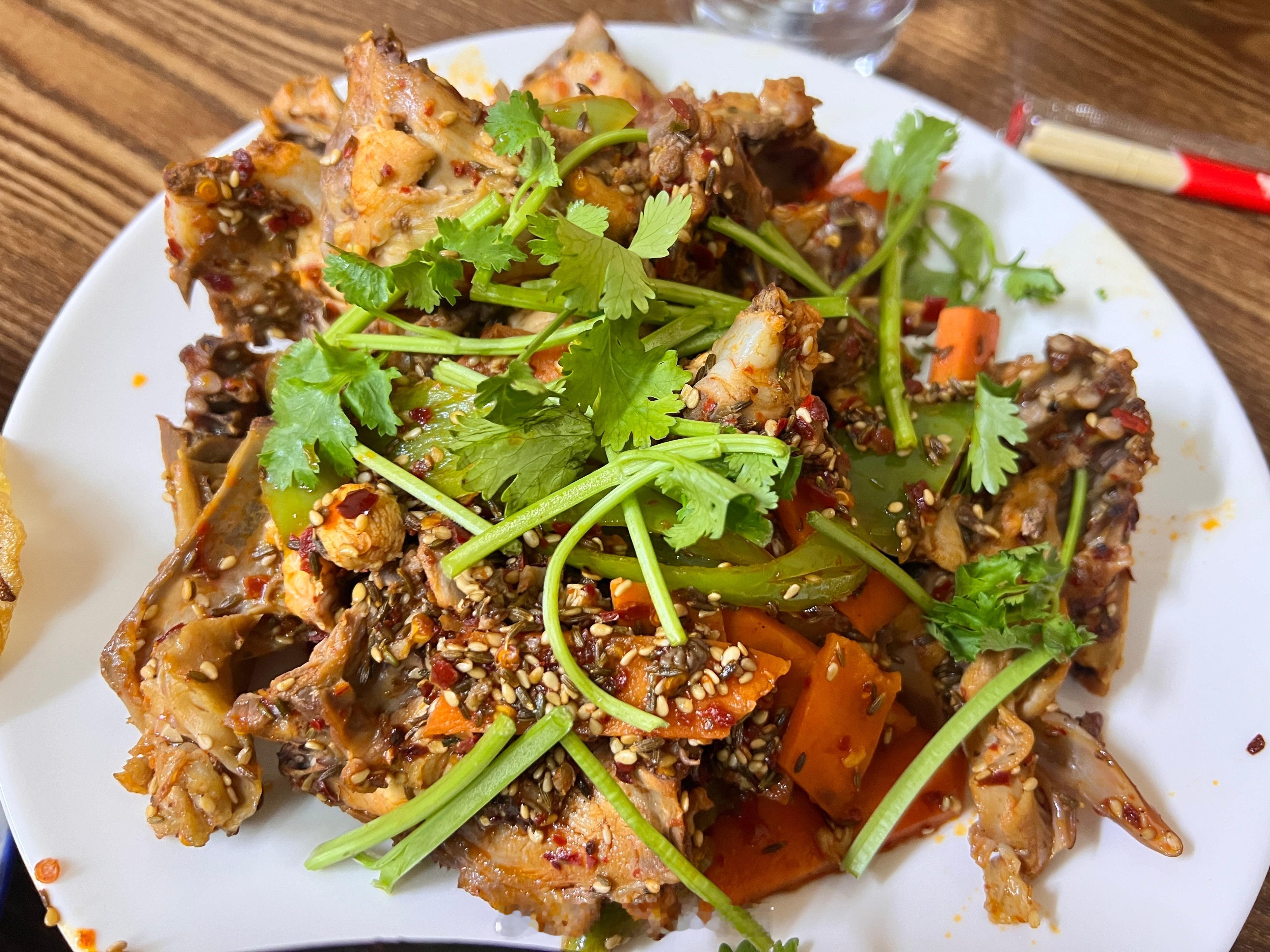 ❤️【炒鸡架】是她家的招牌,酸酸甜甜的可真好吃啊~ 上面撒上芝麻,这调味感觉炒鞋底也难吃不了!