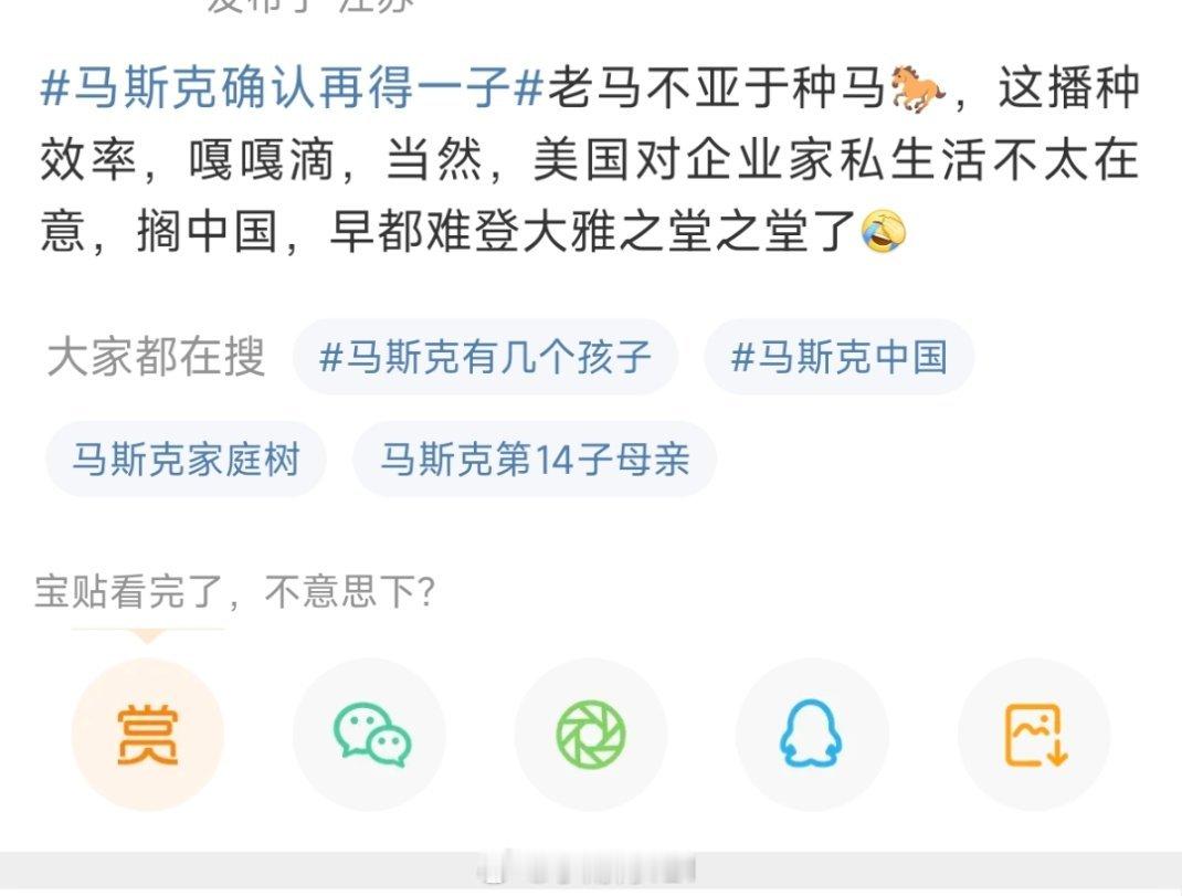 马斯克确认再得一子 点进这个词条被嫡嫡道道笑死了。。。