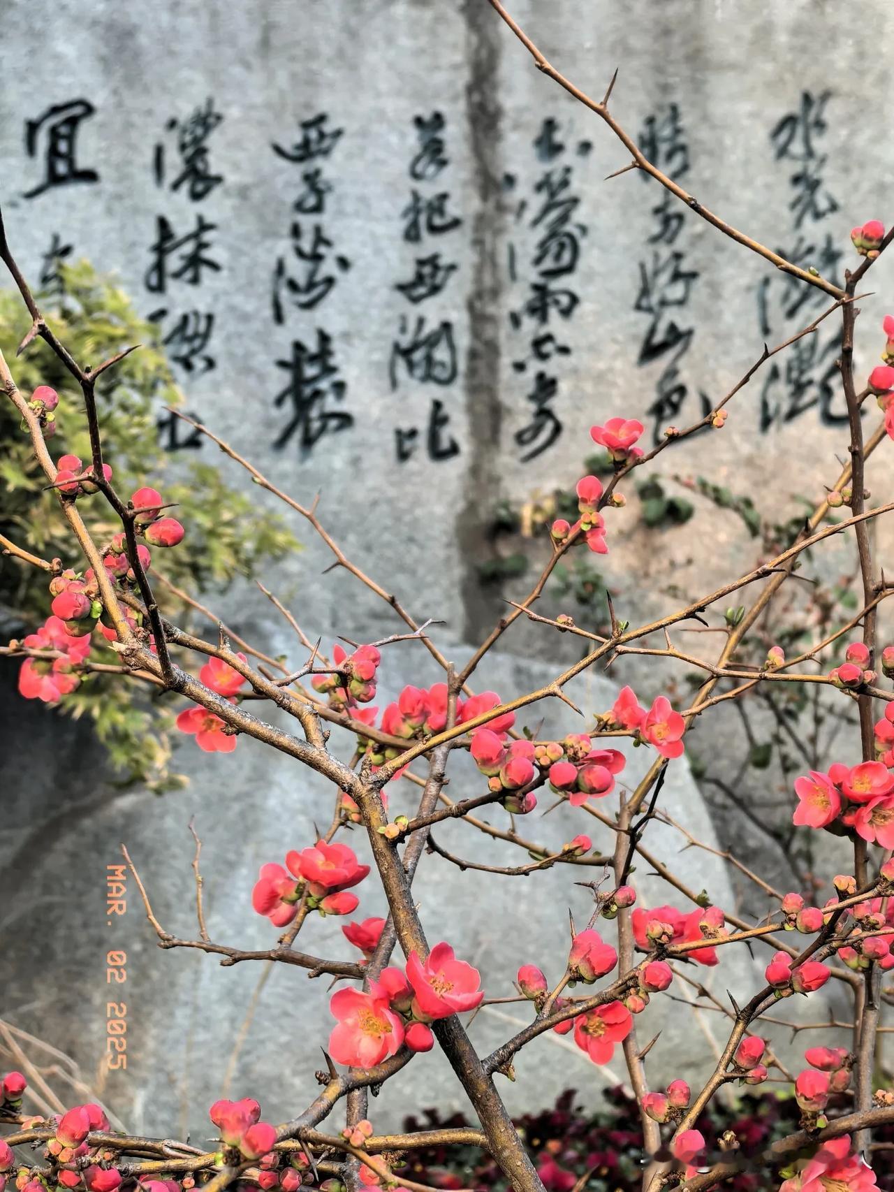 二月江南好风景,故人此日共清明。 二月初三,京杭大运河对岸北望舣舟亭。 远看草色近却无的江南春日,天地间风清气朗,静坐间浑身舒畅。 细柳微绿苦棟黄,梅花盛开扑鼻香。 世人皆曰江南好,心安之处是吾乡。