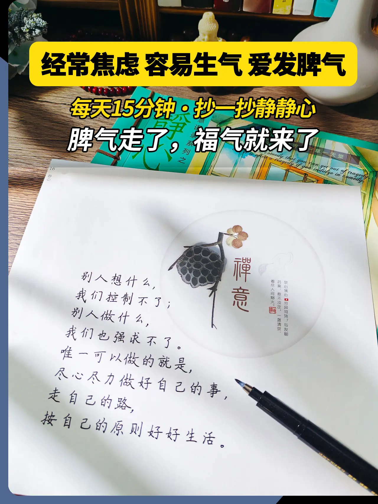 别让你的脾气挡住了你的福气!做一个情绪稳定的女子,低谷烦躁的时候,不妨试着抄一抄写一写,静静心,能稳定情绪就不要内耗自己,不焦虑不生气,脾气走了,福气就来了。