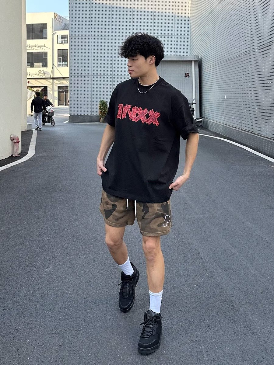 简笔画小人印花短袖男cleanfit青少