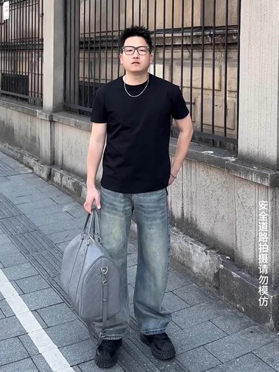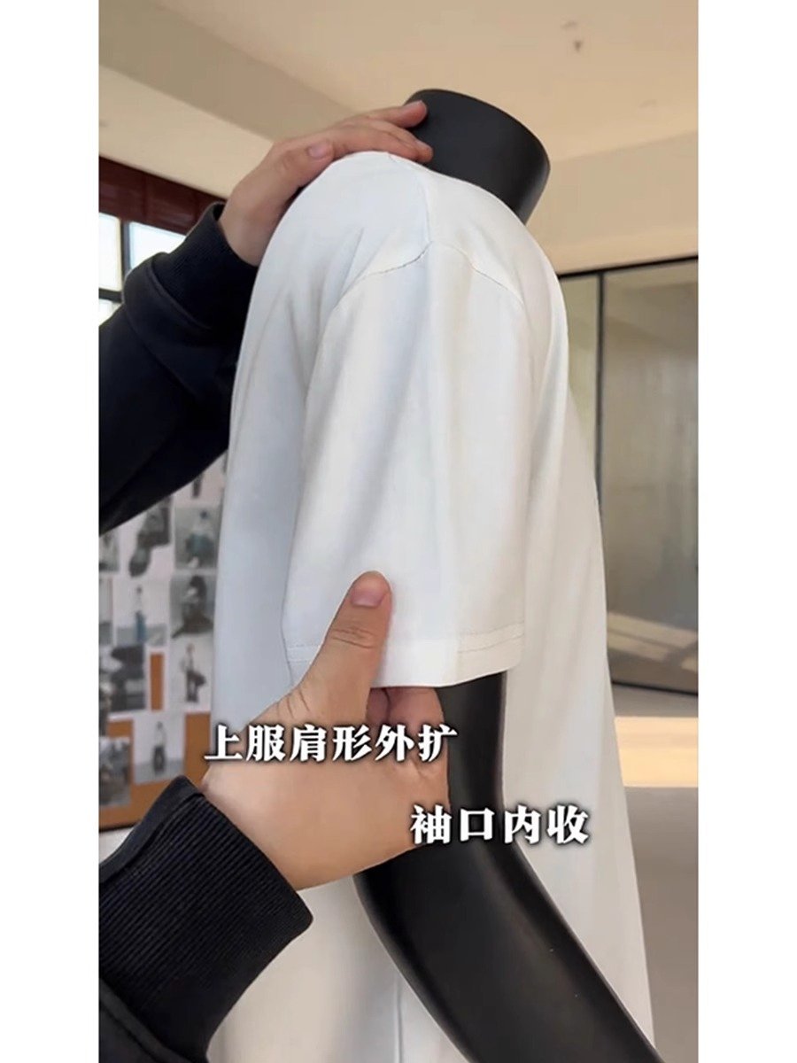 黑色正肩修身短袖男款夏季美式小领口重磅t