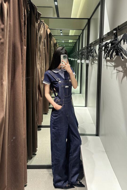 好爱zara这件niu系十足的上衣 搭配同色系背带裤 简约而不简单~