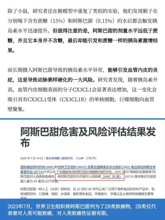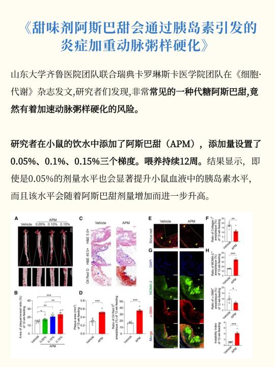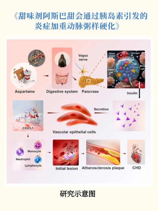 🔬研究划重点:阿斯巴甜通过刺激胰岛素分泌→触发慢性炎症→加速动脉斑块形成
