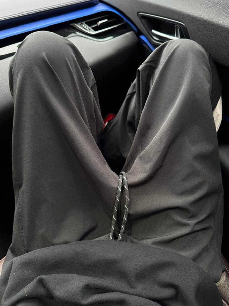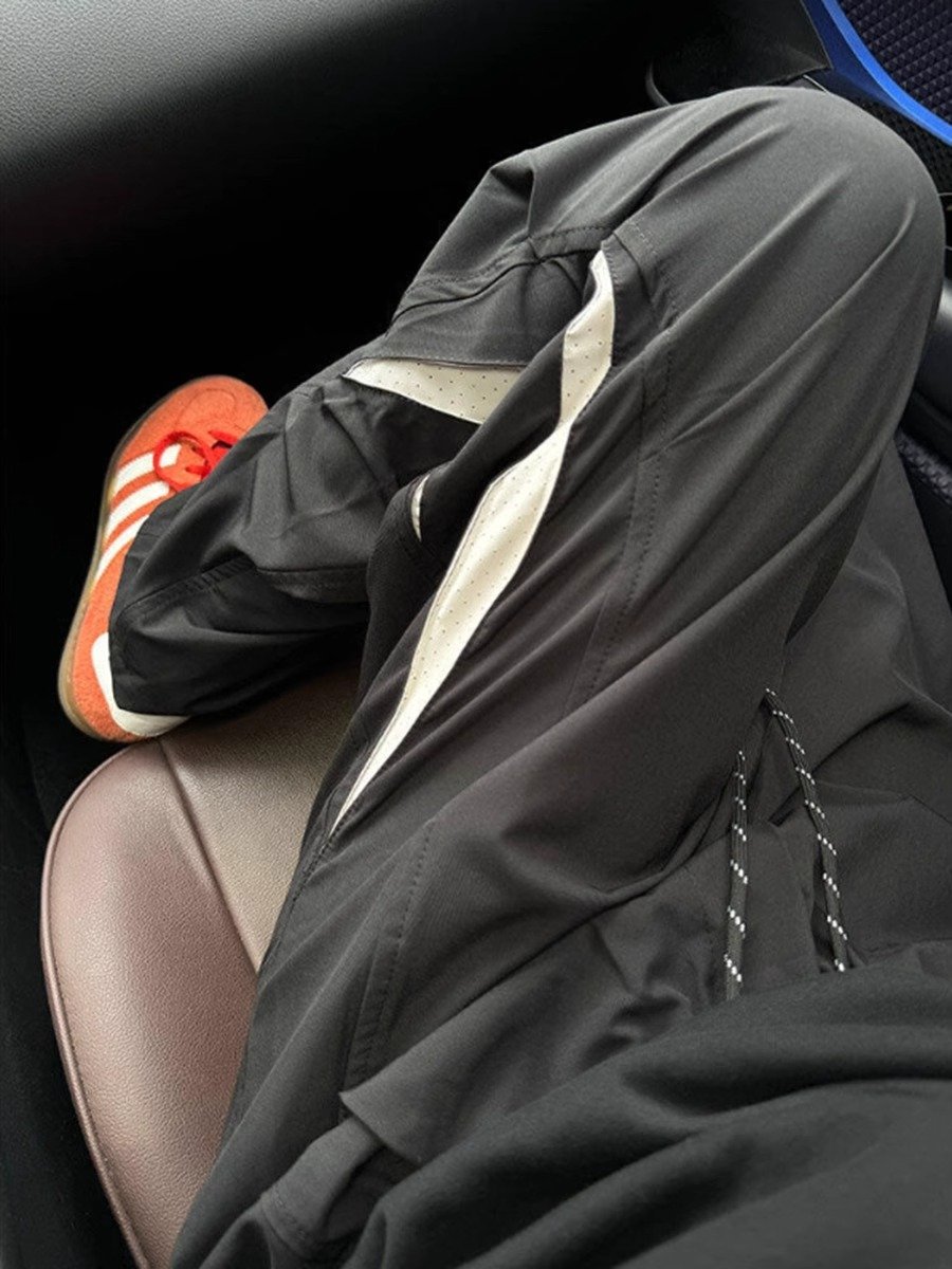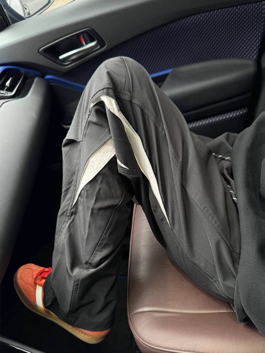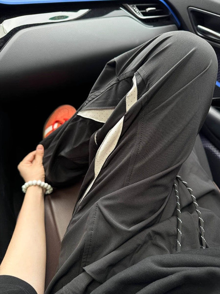 黑色透气网孔速干裤子男款撞色拼接冰丝凉感