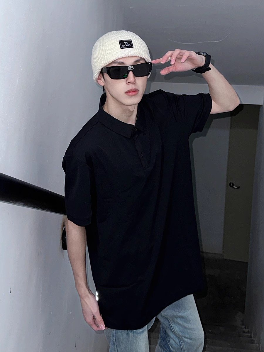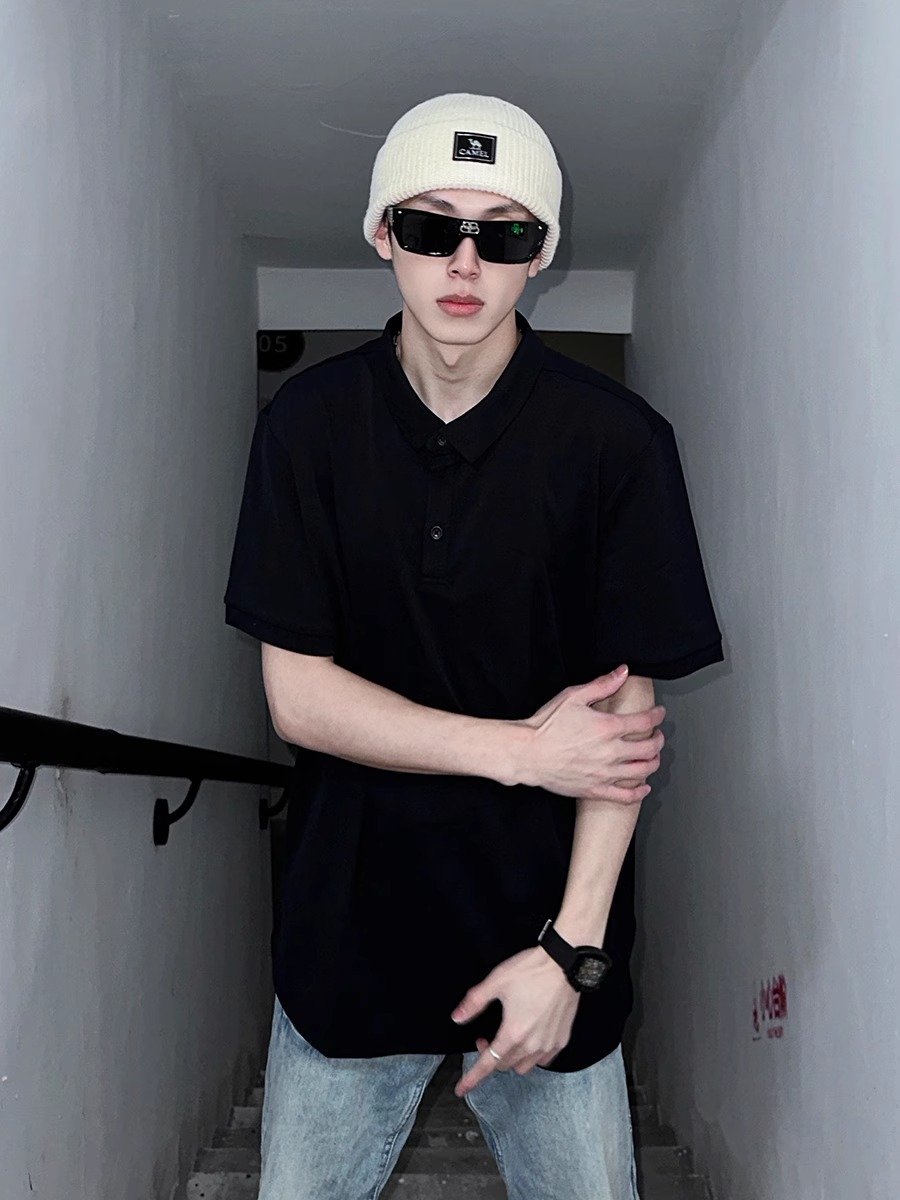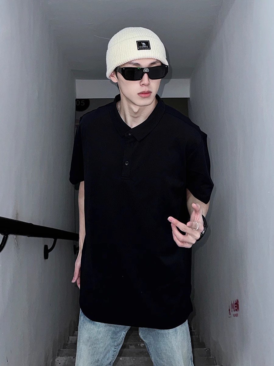 黑色重磅polo衫短袖男夏季青少年酷帅翻
