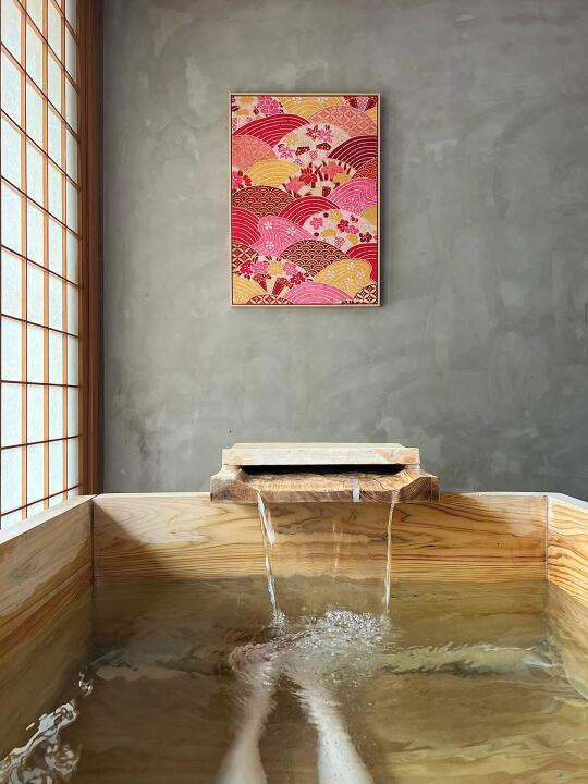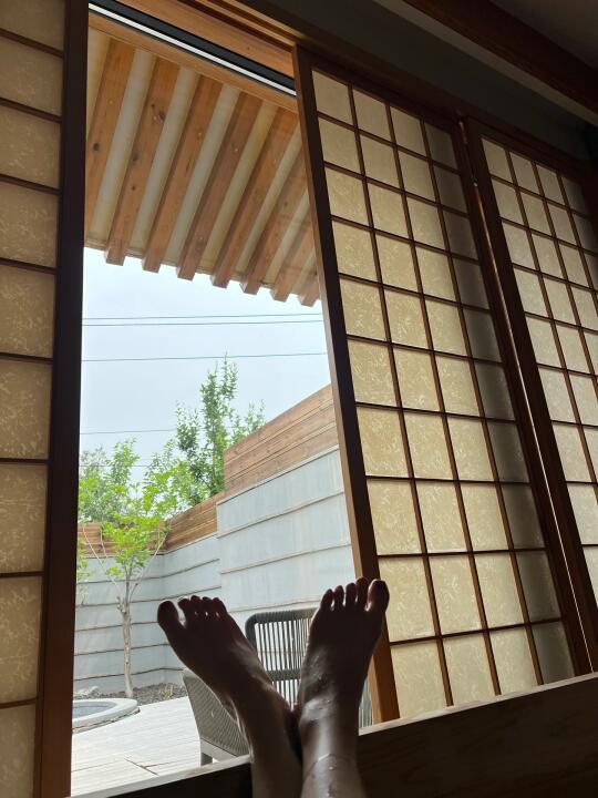 院里的私汤私密性很强,内外都有一个泡池,温泉水是天然的,对皮肤很好👍🏻,每次泡的时候可以喝点冰牛奶🥛,舒服的不行~