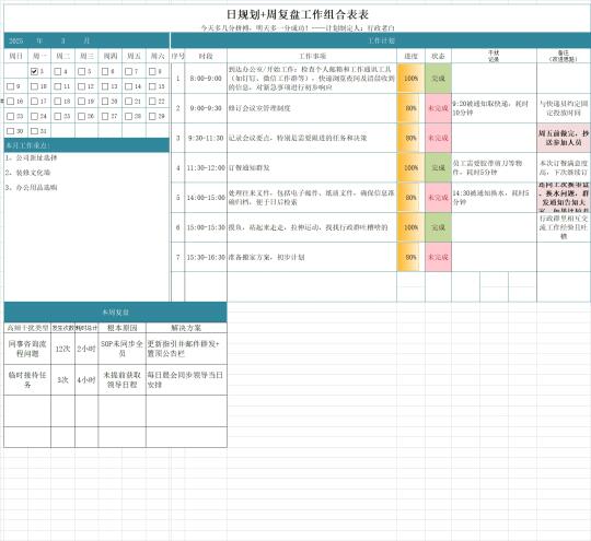 1⃣️前一天列出工作计划表,第二天上班花10分钟核对一下,如果有临时增加,记录为临时增加项