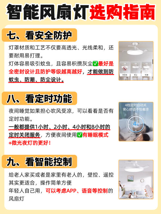 选有定时功能的风扇灯,且有睡眠模式+微光夜灯的更好!