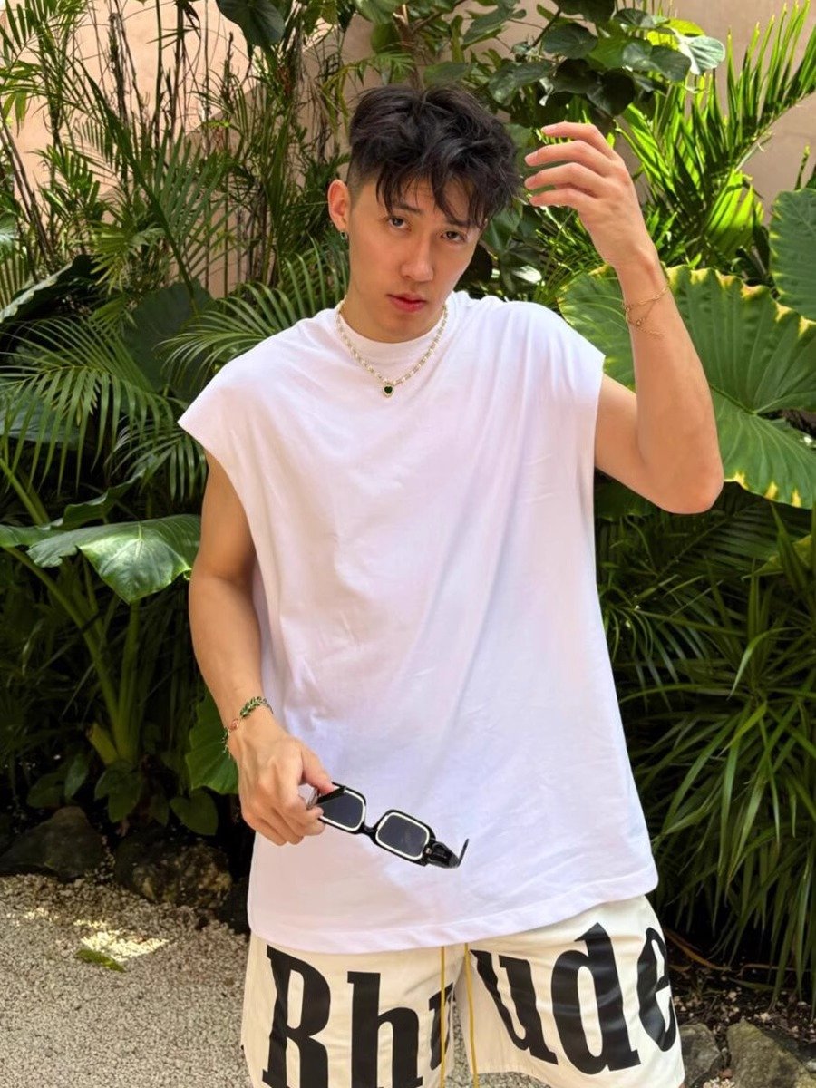 白色重磅坎肩背心男夏季美式休闲小领口无袖